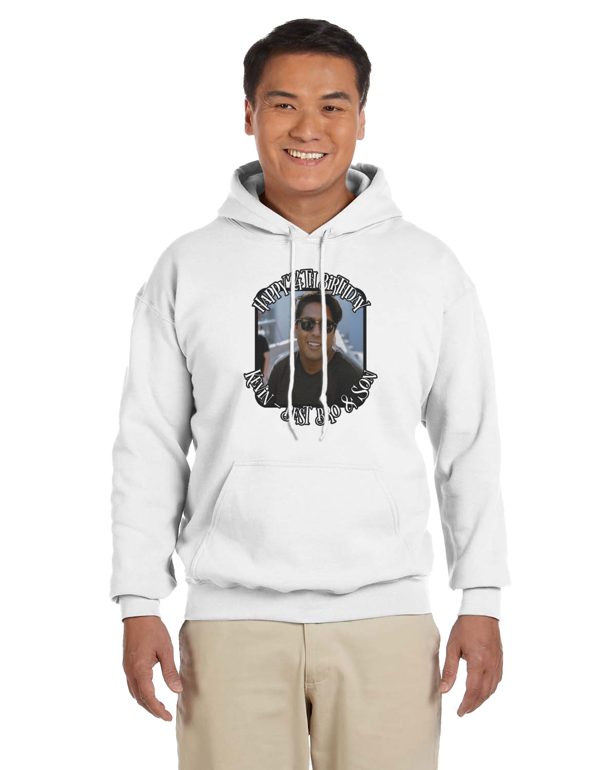 This design has a subtle background that says "Happy Birthday". You are able to upload your own picture of the birthday boy or girl right onto your design. The personalized text goes above and below your picture. This is a great design for pictures of you and the birthday boy/girl, so they can look at that cherished memory every day.