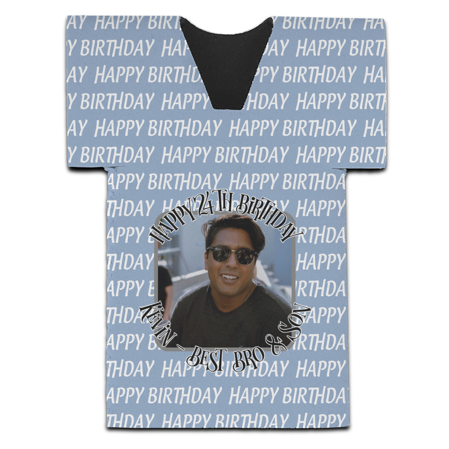 This design has a subtle background that says "Happy Birthday". You are able to upload your own picture of the birthday boy or girl right onto your design. The personalized text goes above and below your picture. This is a great design for pictures of you and the birthday boy/girl, so they can look at that cherished memory every day.