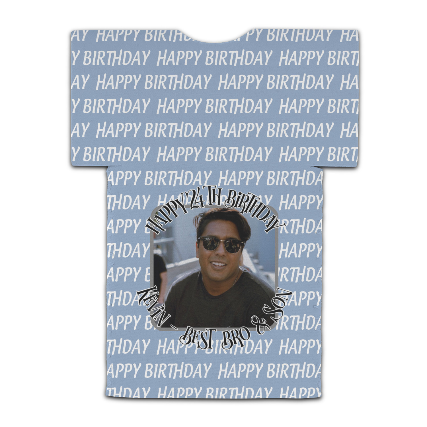 This design has a subtle background that says "Happy Birthday". You are able to upload your own picture of the birthday boy or girl right onto your design. The personalized text goes above and below your picture. This is a great design for pictures of you and the birthday boy/girl, so they can look at that cherished memory every day.