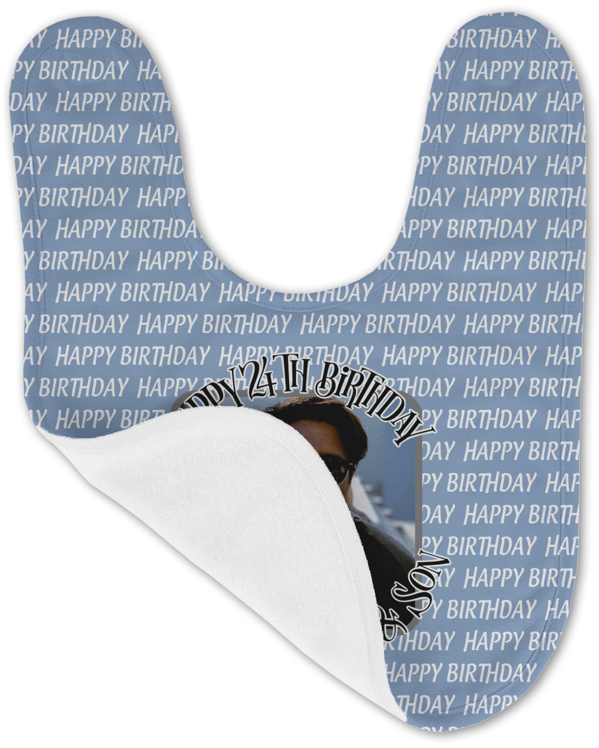Made of soft polyester, each customizable bib hugs comfortably around the neck to catch every drip and drool. Each bib design is printed with baby-safe ink and finished with a secure stitch pattern and velcro clasp. We carry two customizable bib styles -Microfiber Velour and Jersey Knit.