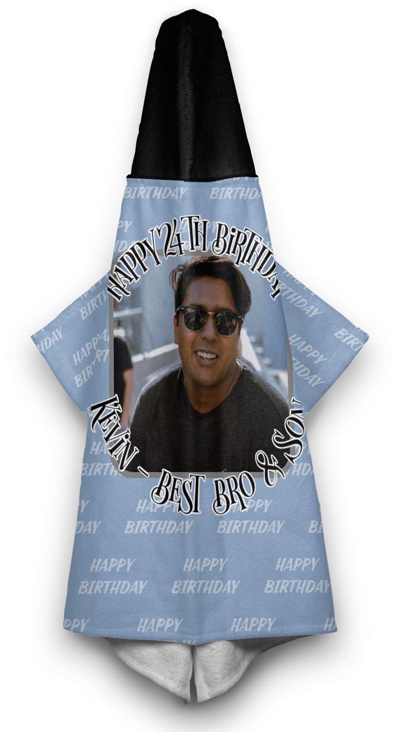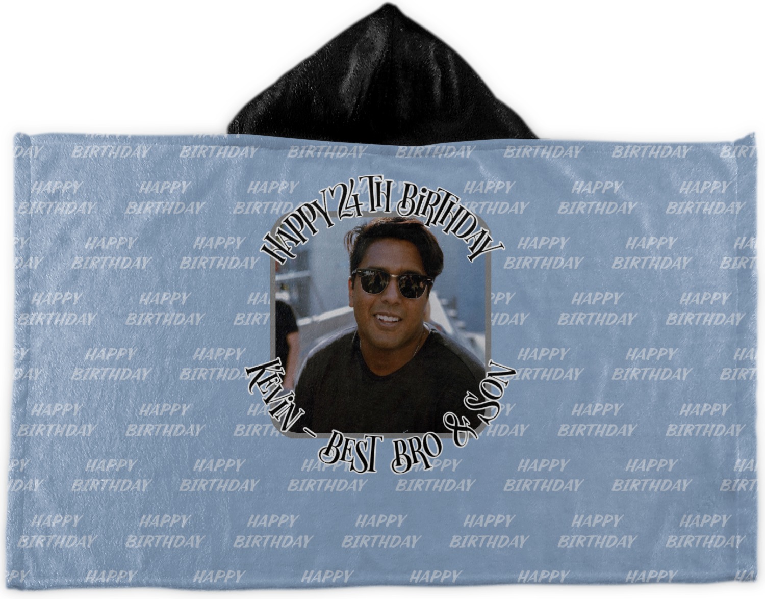 This design has a subtle background that says "Happy Birthday". You are able to upload your own picture of the birthday boy or girl right onto your design. The personalized text goes above and below your picture. This is a great design for pictures of you and the birthday boy/girl, so they can look at that cherished memory every day.