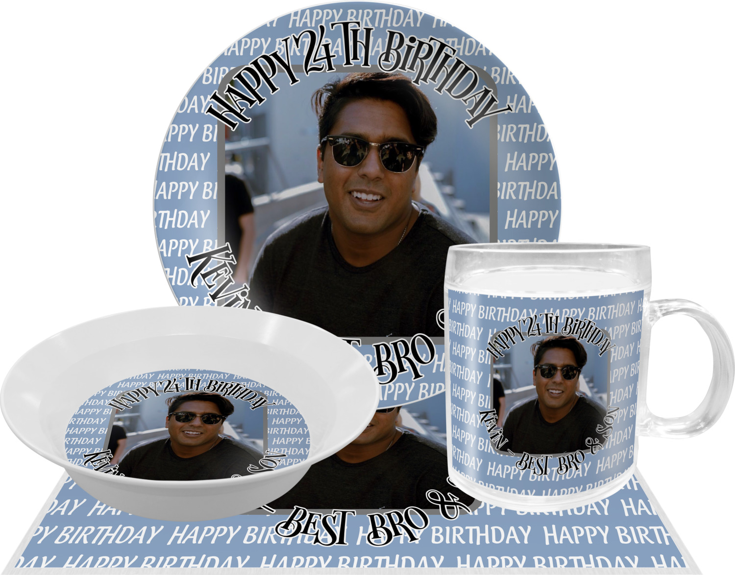 This design has a subtle background that says "Happy Birthday". You are able to upload your own picture of the birthday boy or girl right onto your design. The personalized text goes above and below your picture. This is a great design for pictures of you and the birthday boy/girl, so they can look at that cherished memory every day.