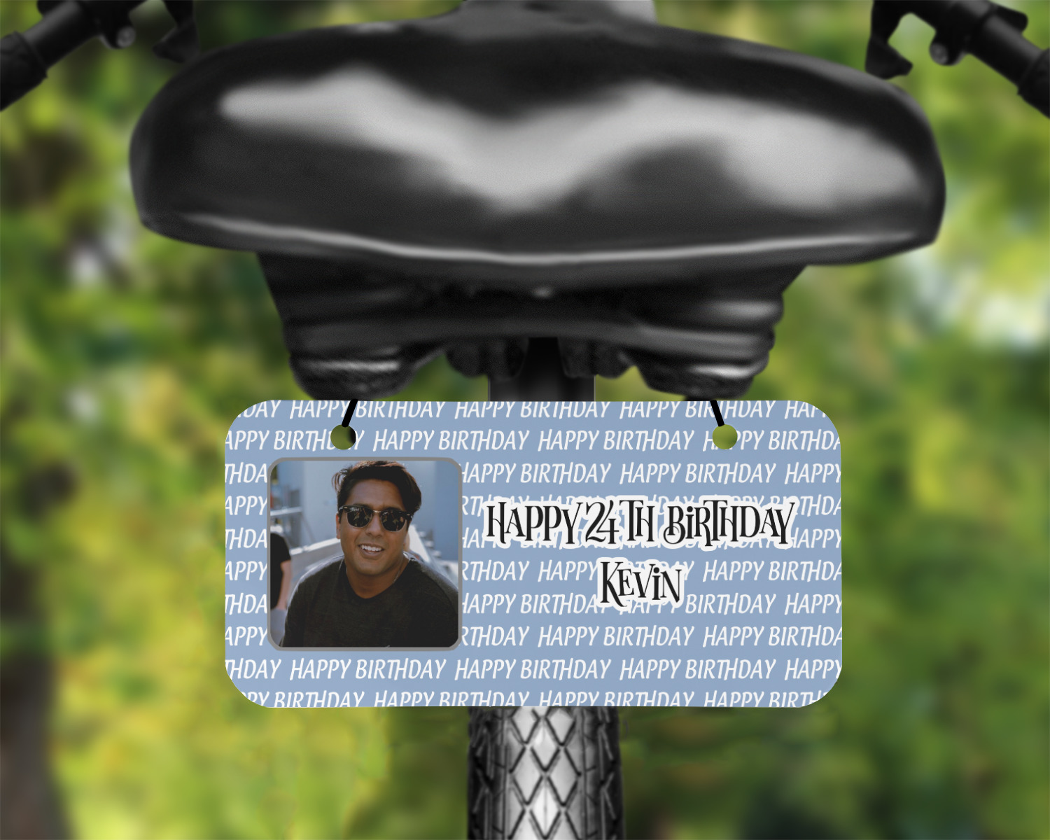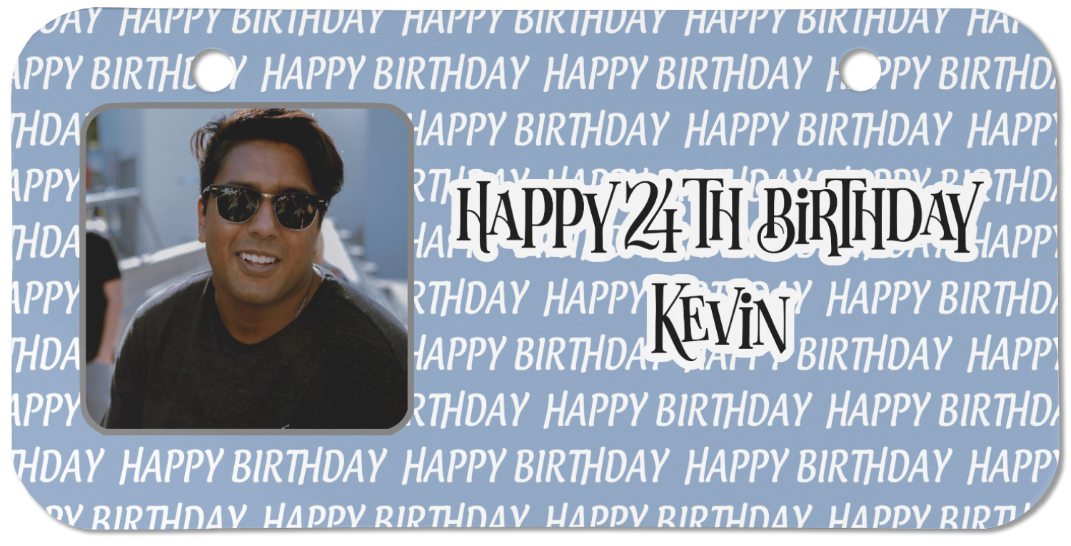 This design has a subtle background that says "Happy Birthday". You are able to upload your own picture of the birthday boy or girl right onto your design. The personalized text goes above and below your picture. This is a great design for pictures of you and the birthday boy/girl, so they can look at that cherished memory every day.