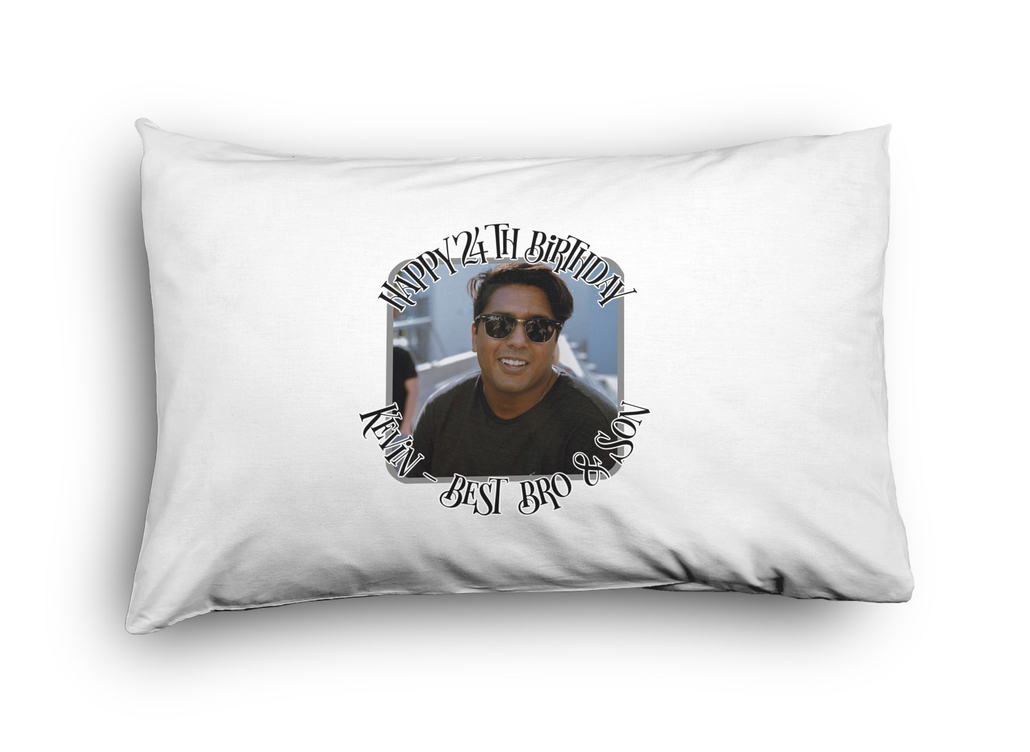 This design has a subtle background that says "Happy Birthday". You are able to upload your own picture of the birthday boy or girl right onto your design. The personalized text goes above and below your picture. This is a great design for pictures of you and the birthday boy/girl, so they can look at that cherished memory every day.