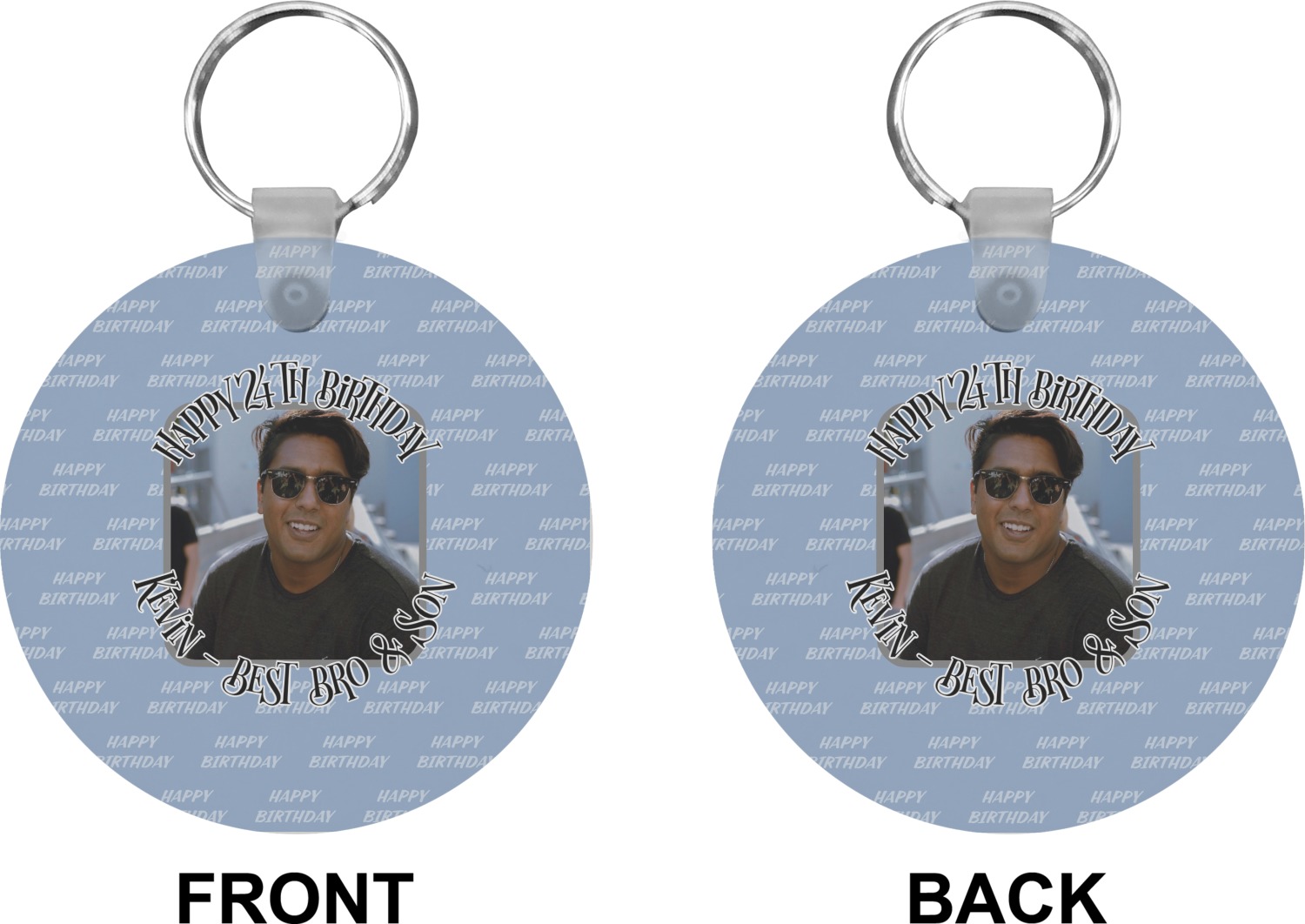 Our personalized keychains attach to the included metal, split key ring with a plastic, removable snap. Since a metal ring is included with your purchase, you have the liberty to keep your keys together on the ring, with or without your unique keychain. We offer this keychain in three different shapes: circle, heart, or diamond. We print your personalized design(s) on both sides of the key chain, and the surface has a glossy, reflective finish that only emphasizes your design. Each keychain is approximately 2.25 by 2.25 inches.