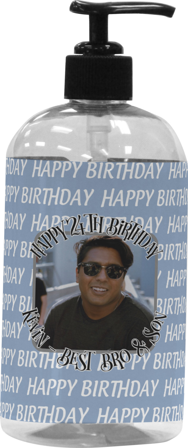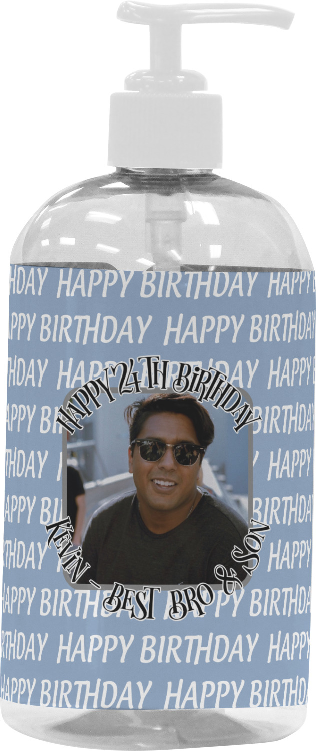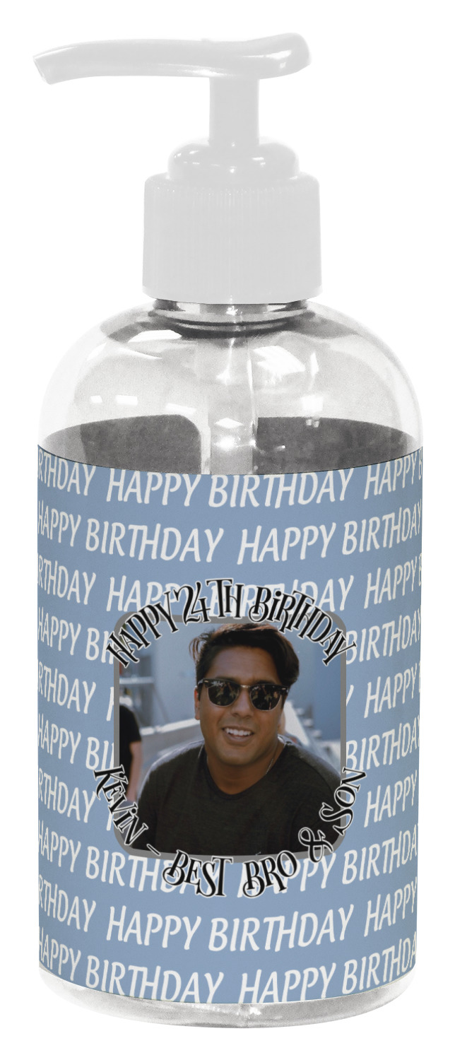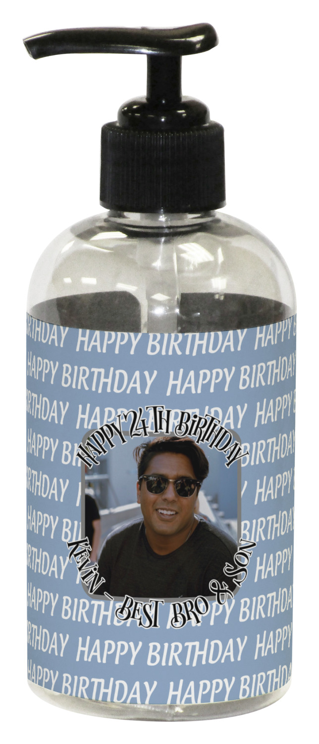 This design has a subtle background that says "Happy Birthday". You are able to upload your own picture of the birthday boy or girl right onto your design. The personalized text goes above and below your picture. This is a great design for pictures of you and the birthday boy/girl, so they can look at that cherished memory every day.