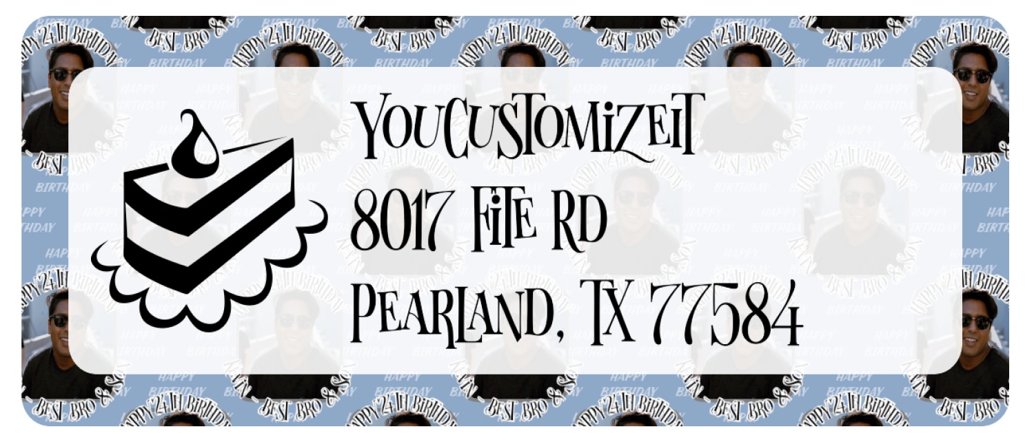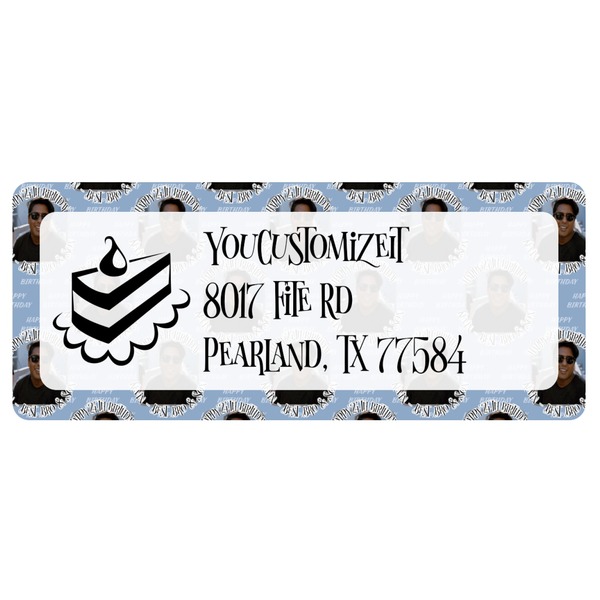 This design has a subtle background that says "Happy Birthday". You are able to upload your own picture of the birthday boy or girl right onto your design. The personalized text goes above and below your picture. This is a great design for pictures of you and the birthday boy/girl, so they can look at that cherished memory every day.
