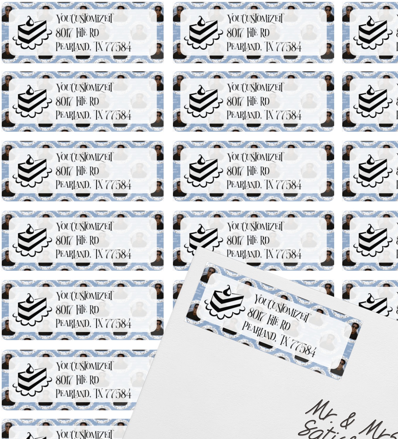 Made of a professional grade, vinyl sticker material, these custom return address labels are shaped into rectangles, but the beautifully rounded edges give the address labels an elegant finish. These mailing labels are printed onto three sheets, with each sheet having 27 labels, resulting in 81 labels in total. With our return address stickers, you're able to customize your address (which is printed on a white background), the graphic accompanying your address, and the border surrounding your address.
