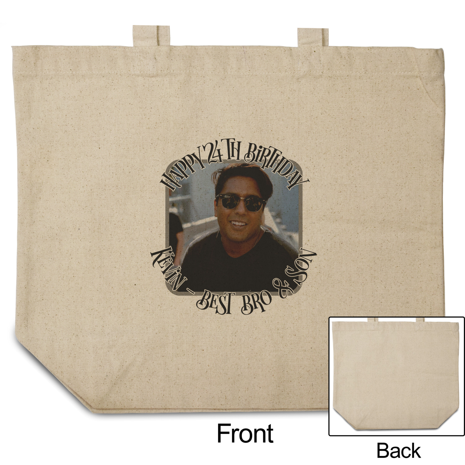 These cotton totes are washable and easy to care for, and they can be folded flat for storage. Your artwork, logo, or photo is printed in full color directly on the cotton tote in the front.