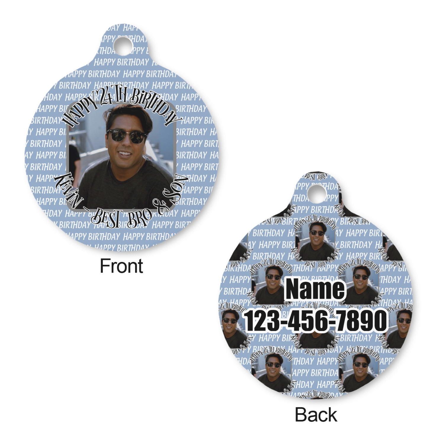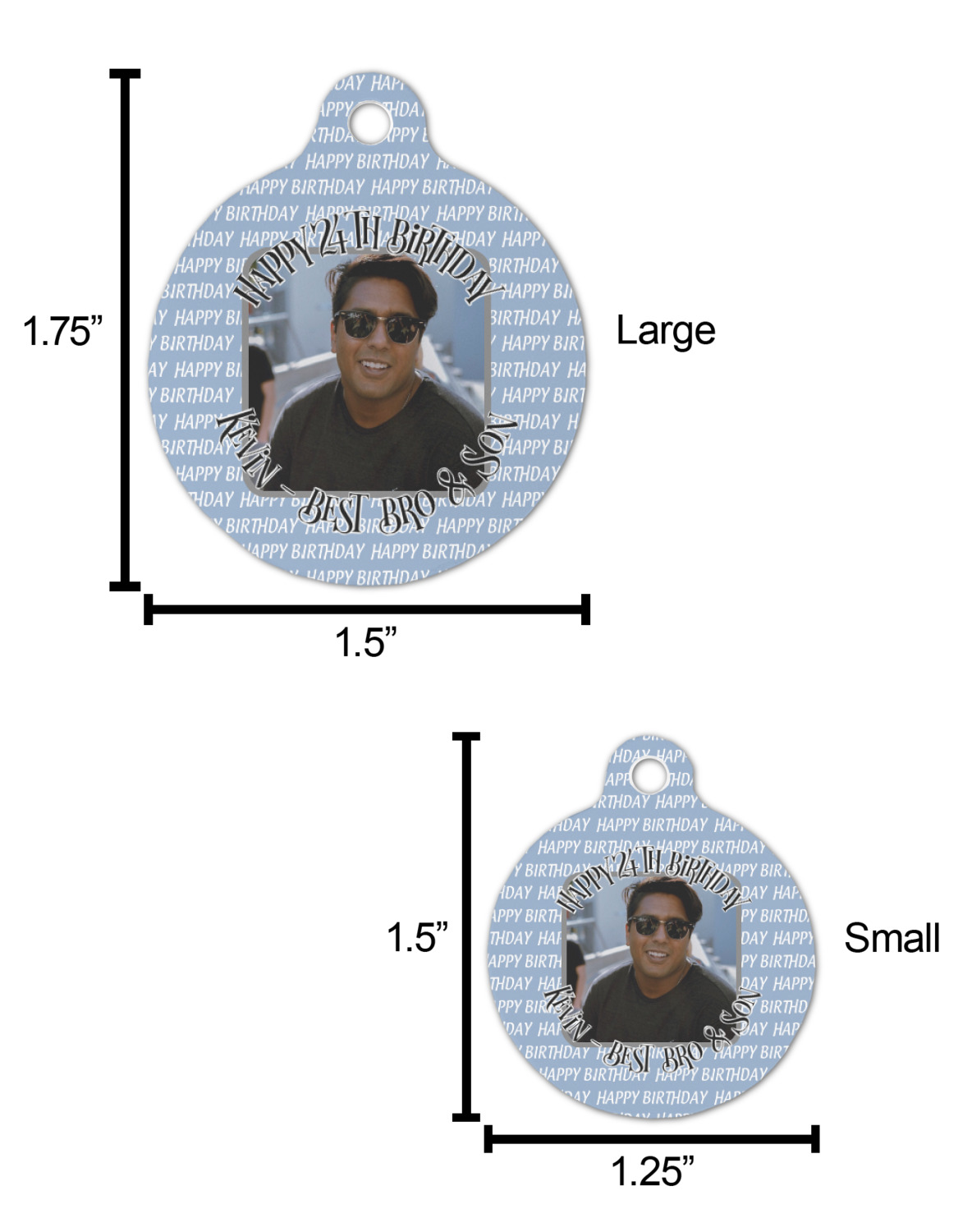 Go ahead; skip the monotony of plain pet ID tags with your very own, customized & personalized, round pet tag! This pet ID tag, fitting for both cats and dogs, will catch the eye of any onlooker (humans, canines, and felines, alike!) and accentuate your pet's individual personality.