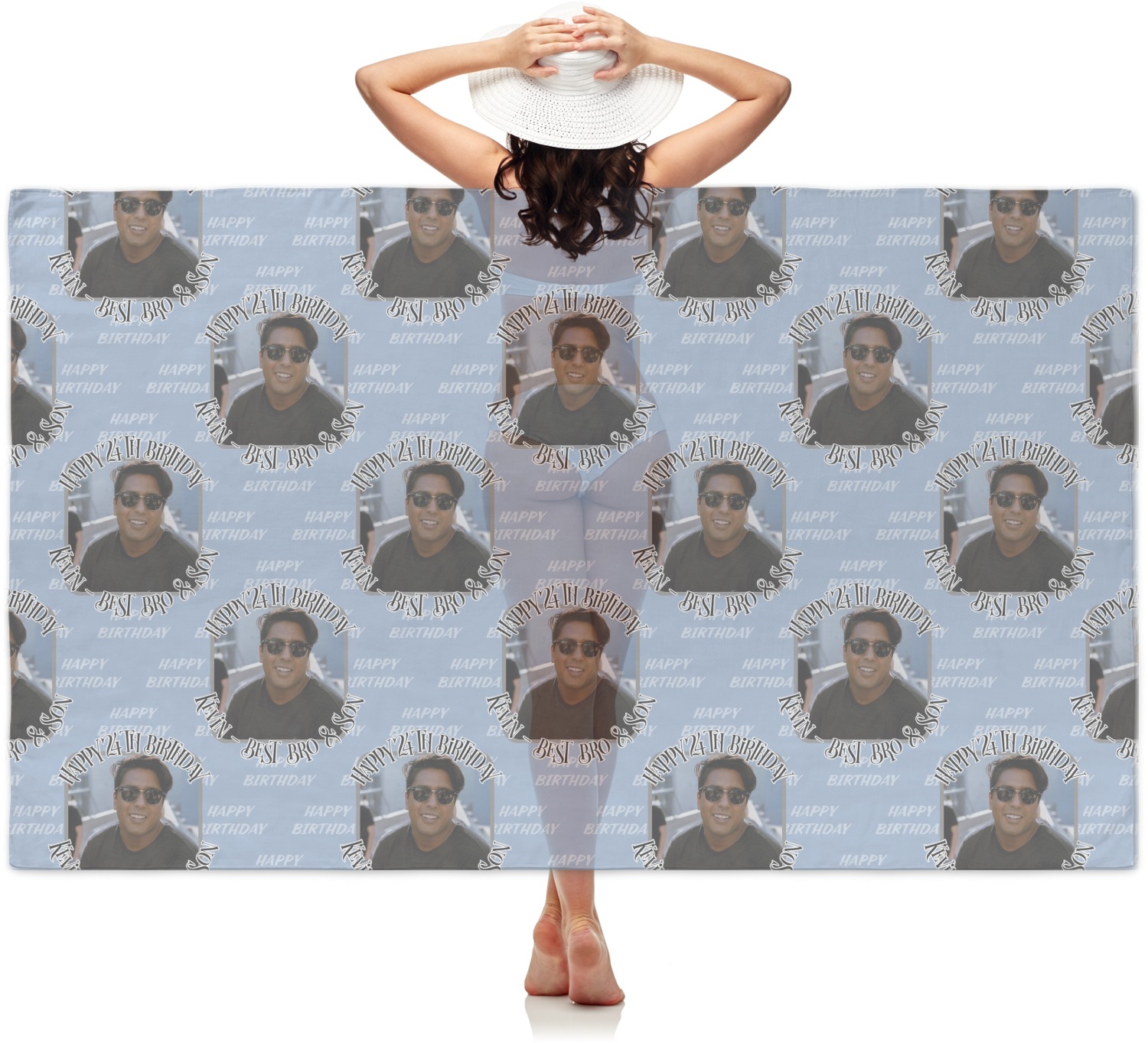 This design has a subtle background that says "Happy Birthday". You are able to upload your own picture of the birthday boy or girl right onto your design. The personalized text goes above and below your picture. This is a great design for pictures of you and the birthday boy/girl, so they can look at that cherished memory every day.