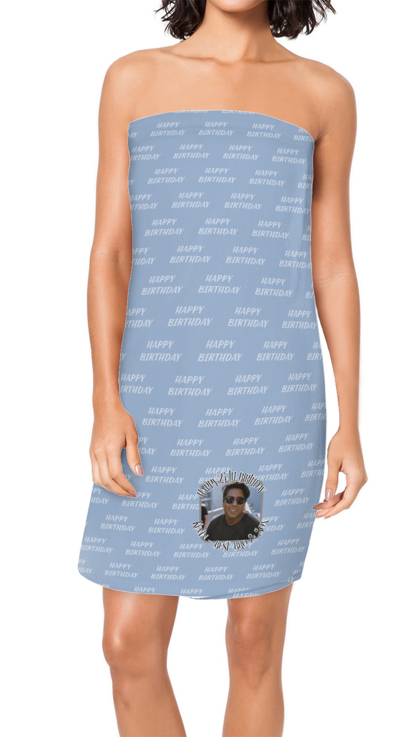 Made from a plush, fleece fabric, these luxurious towel wraps are comfortable and absorbent. They are printed, cut, and sewn for you, right here in the USA, after you place your order. These personalized bath wraps measure at approximately 59 by 32 inches, and display your customization across the outside.