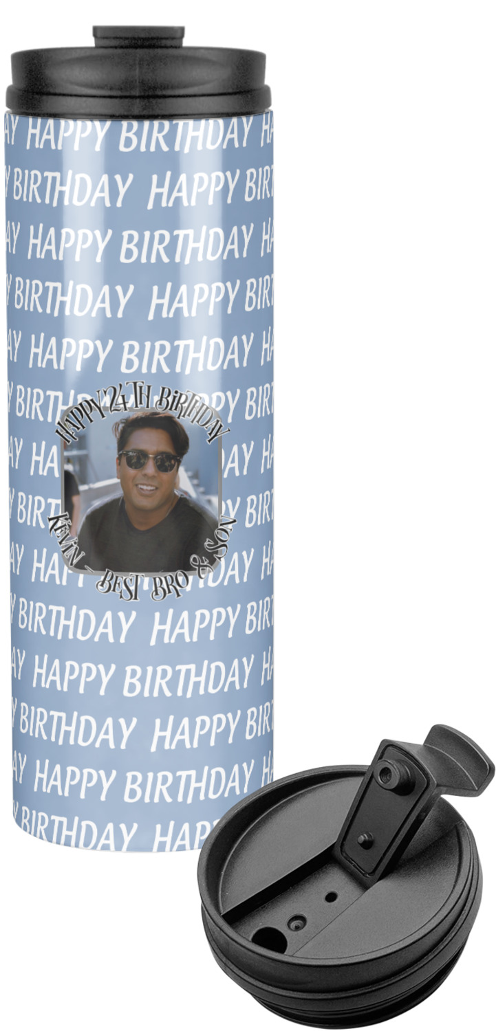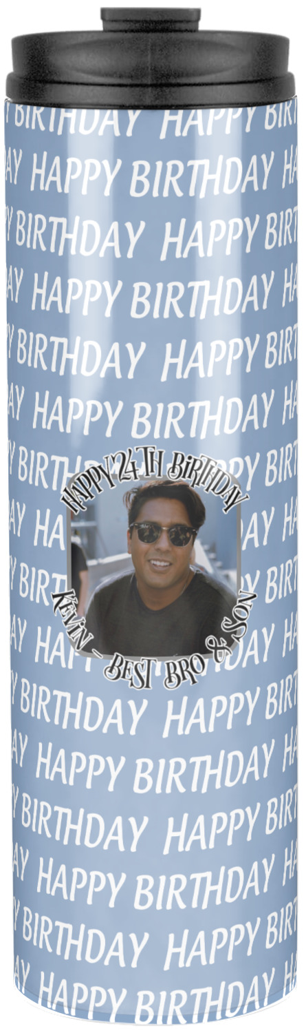 Sip your favorite drink on the go with your own custom stainless steel tumbler! Our slim cylinder shape is perfect for holding your drink in hand, in your purse, or in your backpack! This sleek and modern tumbler is a perfect gift for coffee and tea lovers keeping their drinks just the right temperature throughout the day! We offer two sizes, a 16 oz. or 20 oz., to personalize. Browse and customize or design or create your own with our online design studio!