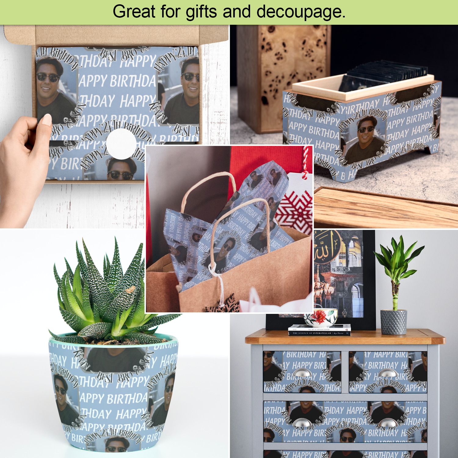 With our tissue paper sheets, you can now print whatever you want to decoupage. You don't have to figure out how to get text on top of purchased papers. You can design it all into a sheet(s) and decorate items exactly the way you want to.