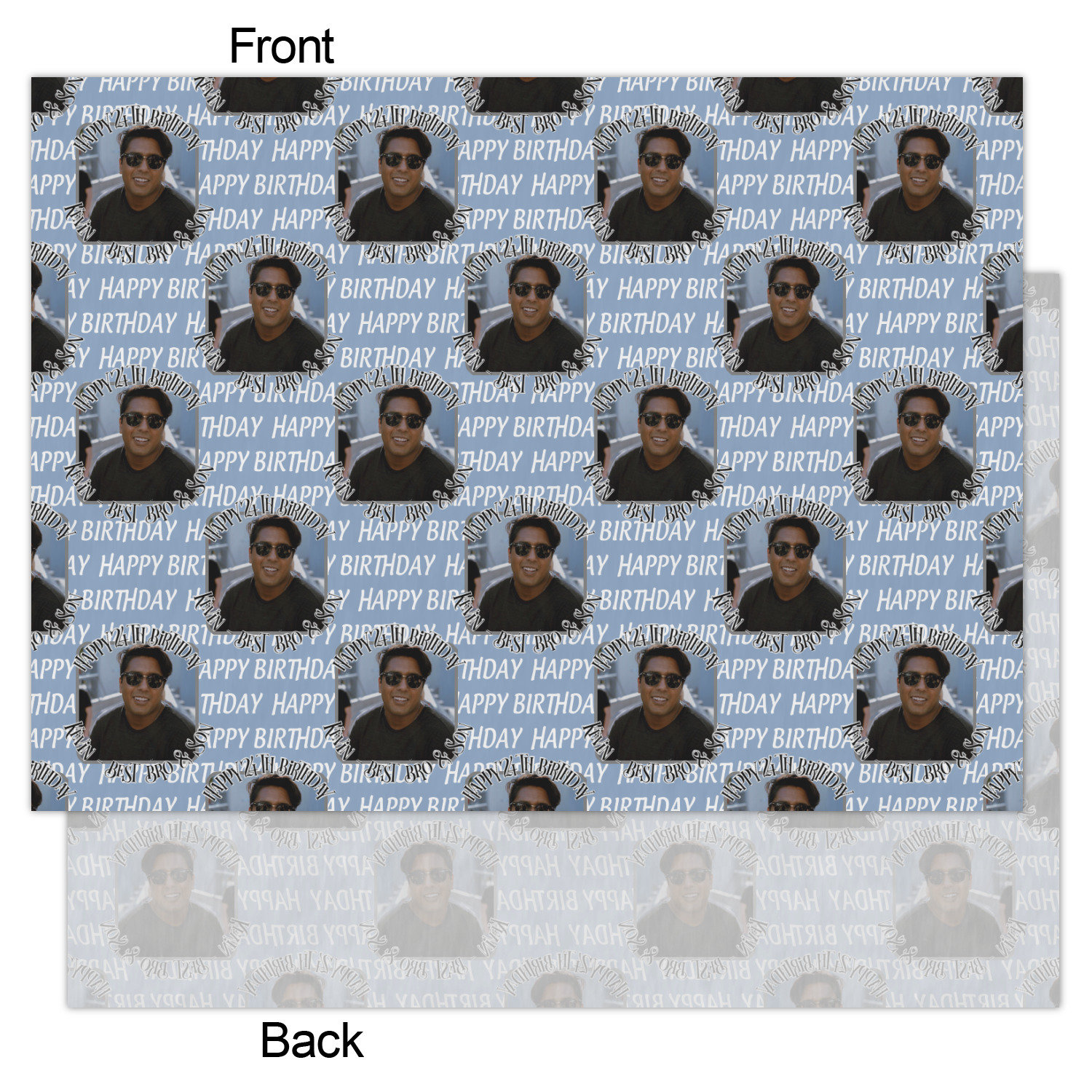 This design has a subtle background that says "Happy Birthday". You are able to upload your own picture of the birthday boy or girl right onto your design. The personalized text goes above and below your picture. This is a great design for pictures of you and the birthday boy/girl, so they can look at that cherished memory every day.