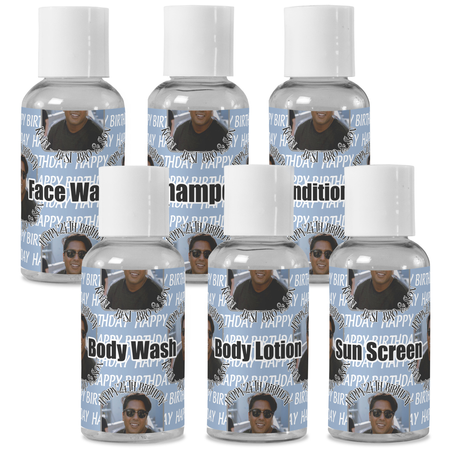 These soap and lotion travel bottles are the perfect place to start. Each set comes with 6 clear plastic bottles with white pop top lids. The bottles are cylindrical and can hold approximately 2.7oz. Perfect for plane travel!