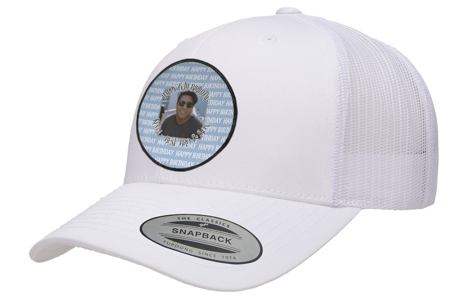 This design has a subtle background that says "Happy Birthday". You are able to upload your own picture of the birthday boy or girl right onto your design. The personalized text goes above and below your picture. This is a great design for pictures of you and the birthday boy/girl, so they can look at that cherished memory every day.