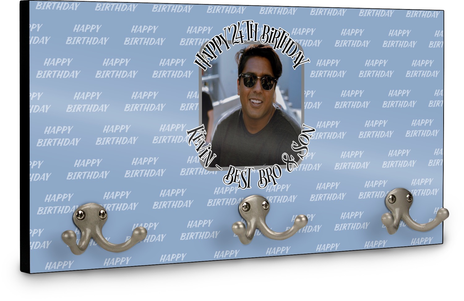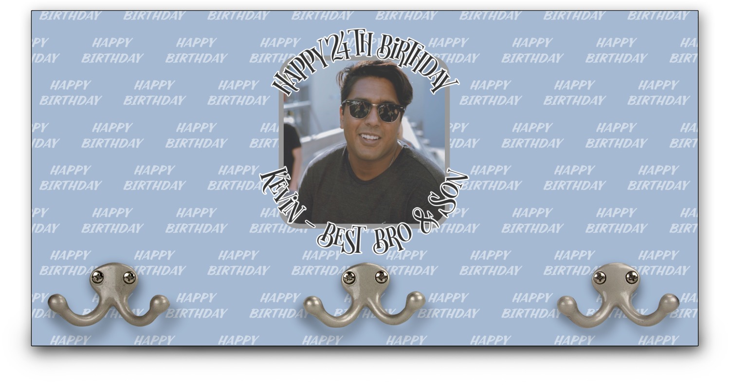 This design has a subtle background that says "Happy Birthday". You are able to upload your own picture of the birthday boy or girl right onto your design. The personalized text goes above and below your picture. This is a great design for pictures of you and the birthday boy/girl, so they can look at that cherished memory every day.