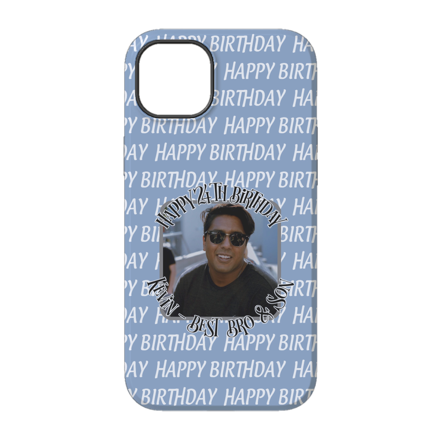This design has a subtle background that says "Happy Birthday". You are able to upload your own picture of the birthday boy or girl right onto your design. The personalized text goes above and below your picture. This is a great design for pictures of you and the birthday boy/girl, so they can look at that cherished memory every day.