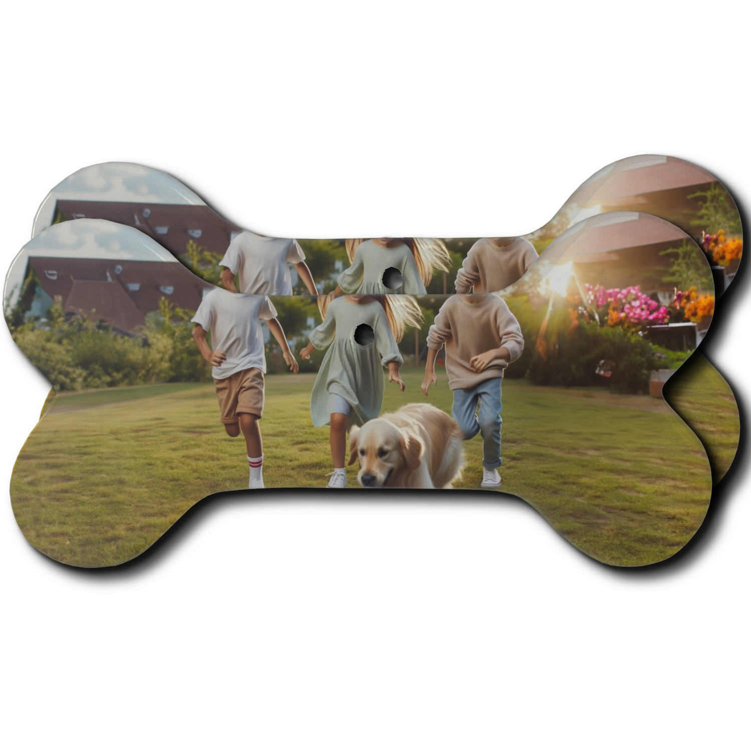 Pets are part of the family, too! Show off your puppy love by creating a personalized ornament for them this Christmas! You'll have their tails wagging hanging up their own custom dog bone ornament! Our customizable ornaments are more than just decorations for the holidays. Use the dog ornament as a nameplate, unique photo frame, or more! Start personalizing your dog ornament today with our online design studio. We offer customizable designs, or you can upload a photo for us to print!