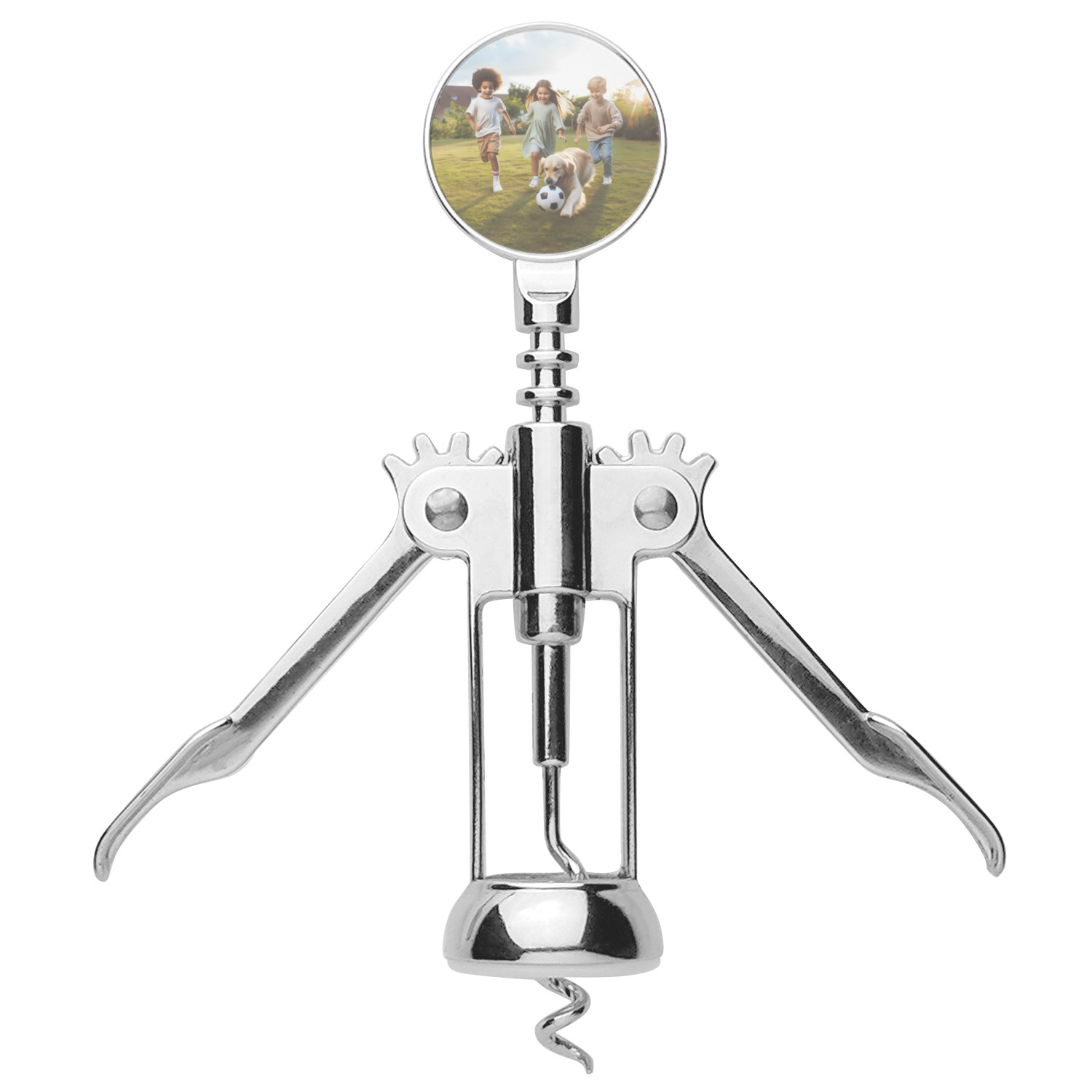 Built from a robust stainless steel, this wine bottle opener features winged grippers that let you remove the cork with little to no resistance. Your personalized corkscrew also includes a circular turn-handle at its top. At 7 inches long, you can easily store this wine corkscrew in a drawer or a shelf. Your customization is printed on both sides of the turn-handle, and can be customized individually.