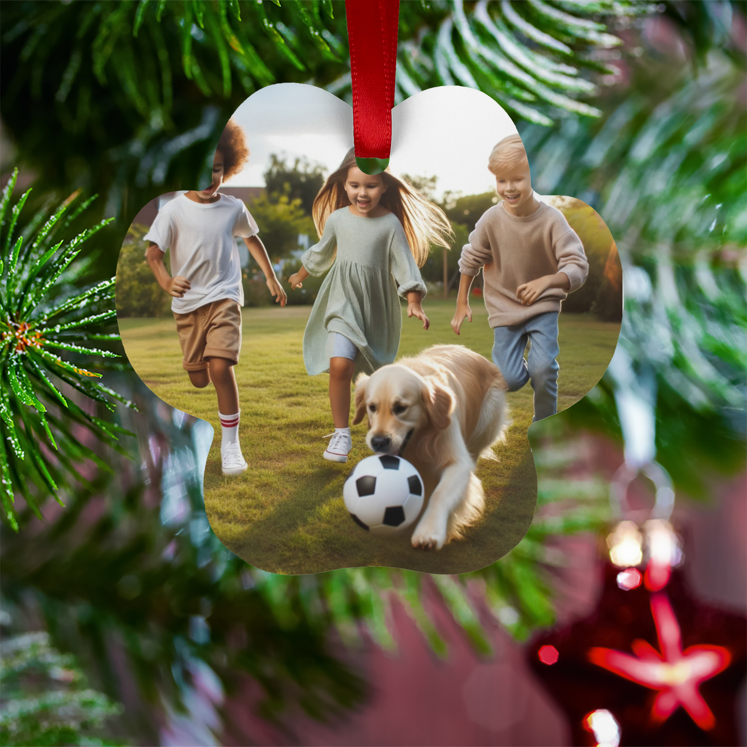 We offer double-sided printing on our personalized metal ornaments all with a gloss finish to make sure your Christmas tree continues to illuminate through the night. We offer 4 different metal ornament shapes to help express yourself or loved ones! Choose from our ball, paw print, star, or frame metal ornaments. Each metal ornament is an aluminum material sure to last you as many years as needed to share the joy and warmth of the holiday. We pair each customizable ornament with a red ribbon to tie your ornament and hang on your Christmas tree!