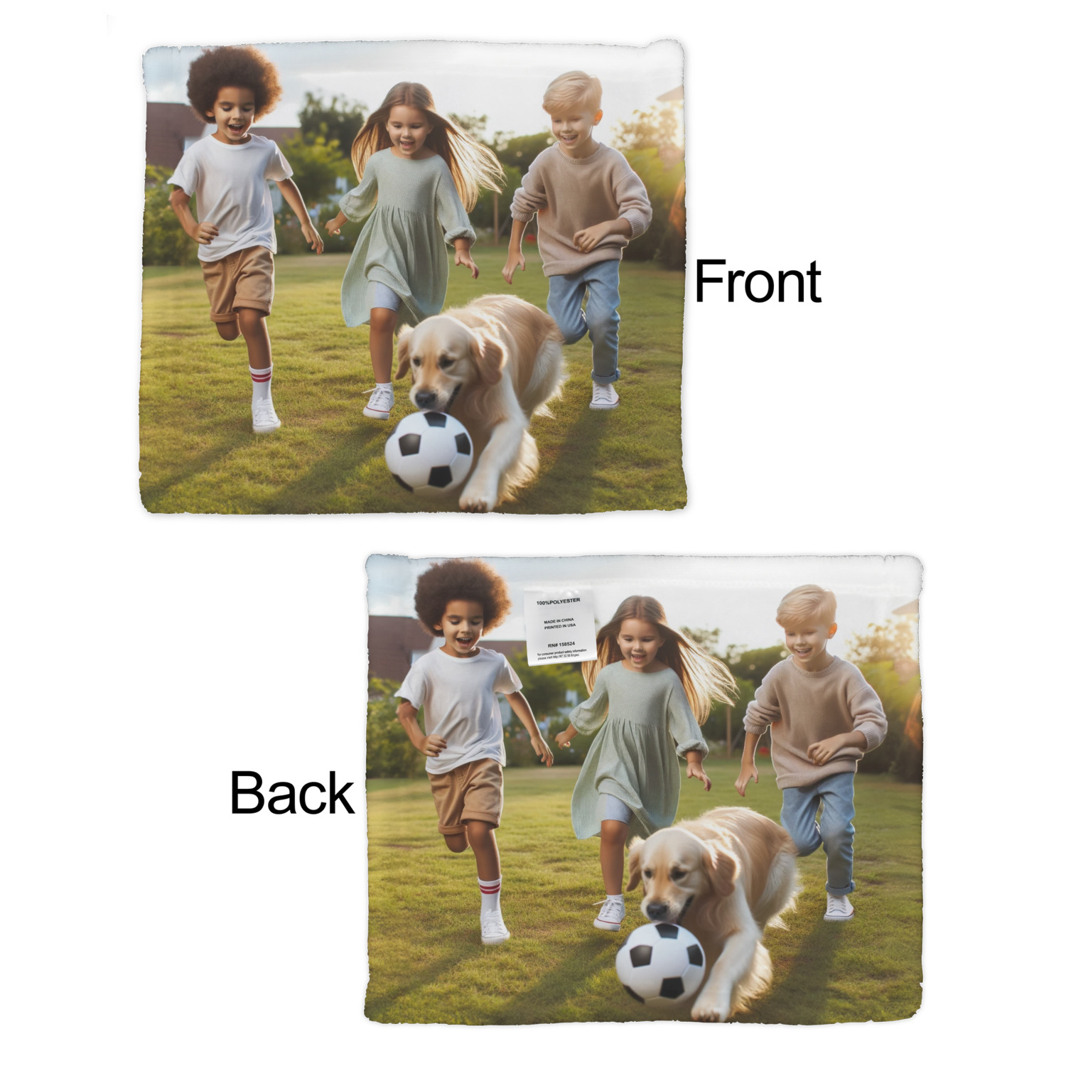 Our customized security AKA lovey blankets are available in 2 print styles - single sided or double sided. You can customize both the front and the back of the lovey security blankets. You have the option to choose different designs or the same design - the choice is yours.