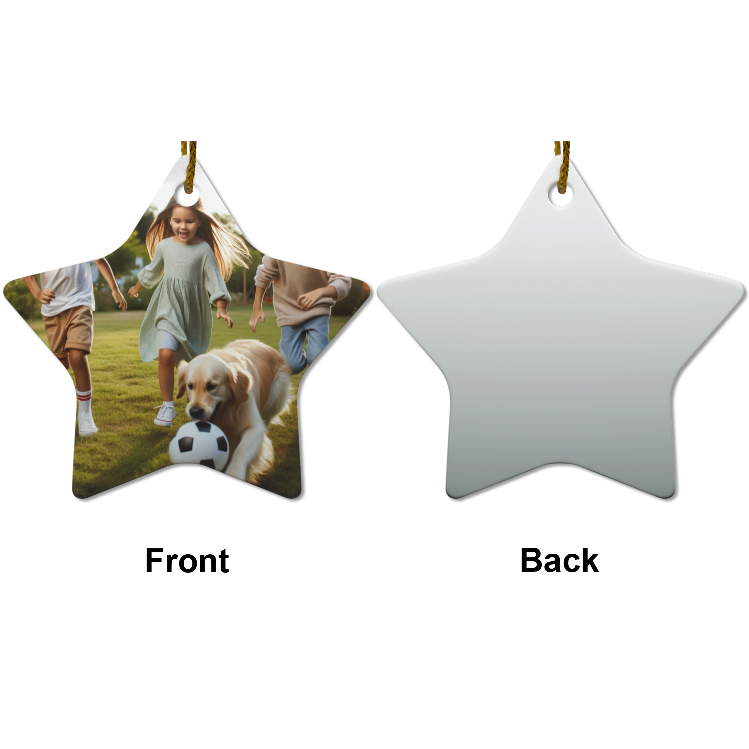 Our ceramic ornaments are a nice touch of pottery like accents not only for a rustic of vintage-themed Christmas but for any style you want to do this holiday! We carry a selection of flat ceramics to personalize. Choose from a round, star, or heart-shaped porcelain ornament to design! Each shape is approximately 3" x 3" and is perfect for long term use to adorn your tree every holiday! Use our online design studio to personalize your own ceramic ornament today!
