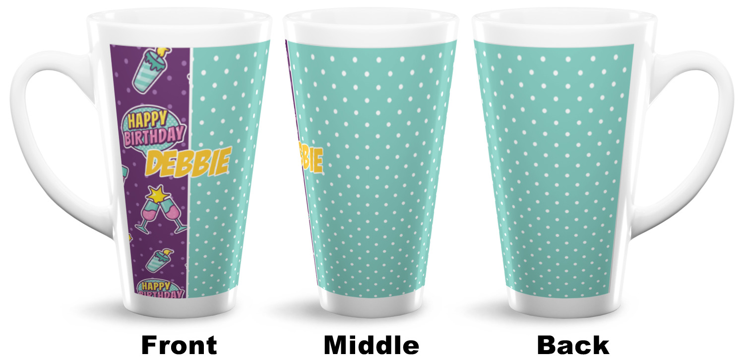 Sip and stay cozy with our custom latte mugs! Mugs are a simple gift for anyone, but make yours unique by personalizing our ceramic mugs for you and your close ones! Our tall latte mugs are great for an iced latte to start your day or the perfect size for some extra warm tea before bed! Use our smaller latte mugs to practice latte art! Browse our many designs, create your own, upload a photo or logo, and more with our online design studio!