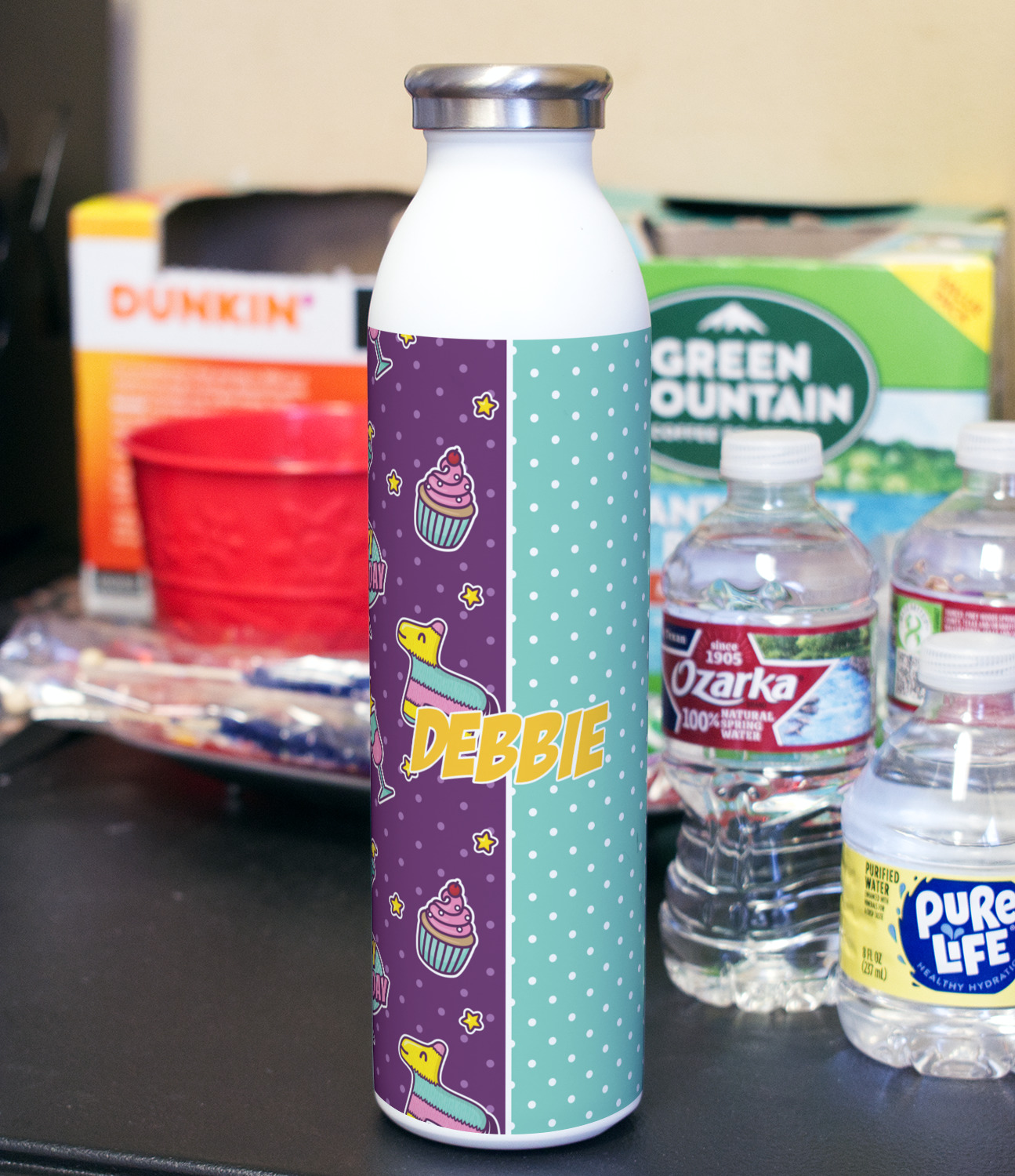 With the double wall insulated construction this bottle will keep drinks cold for 24 hours and hot for 12 hours. The large size allows for a beautiful large artwork space to allow you to make this bottle all your own.