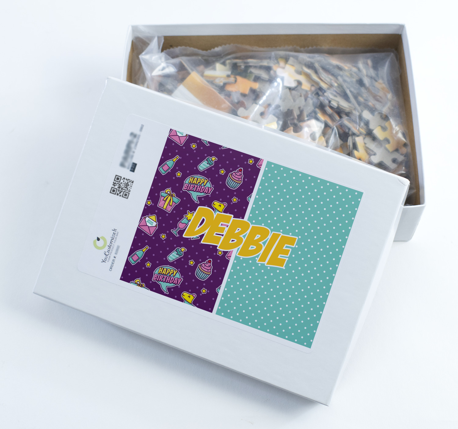 You can also upload your logo or art that you or your kids drew. To create more challenging jigsaw puzzles, you can create a pattern from with your logo or artwork. You can also add other elements such as text or personalization.
