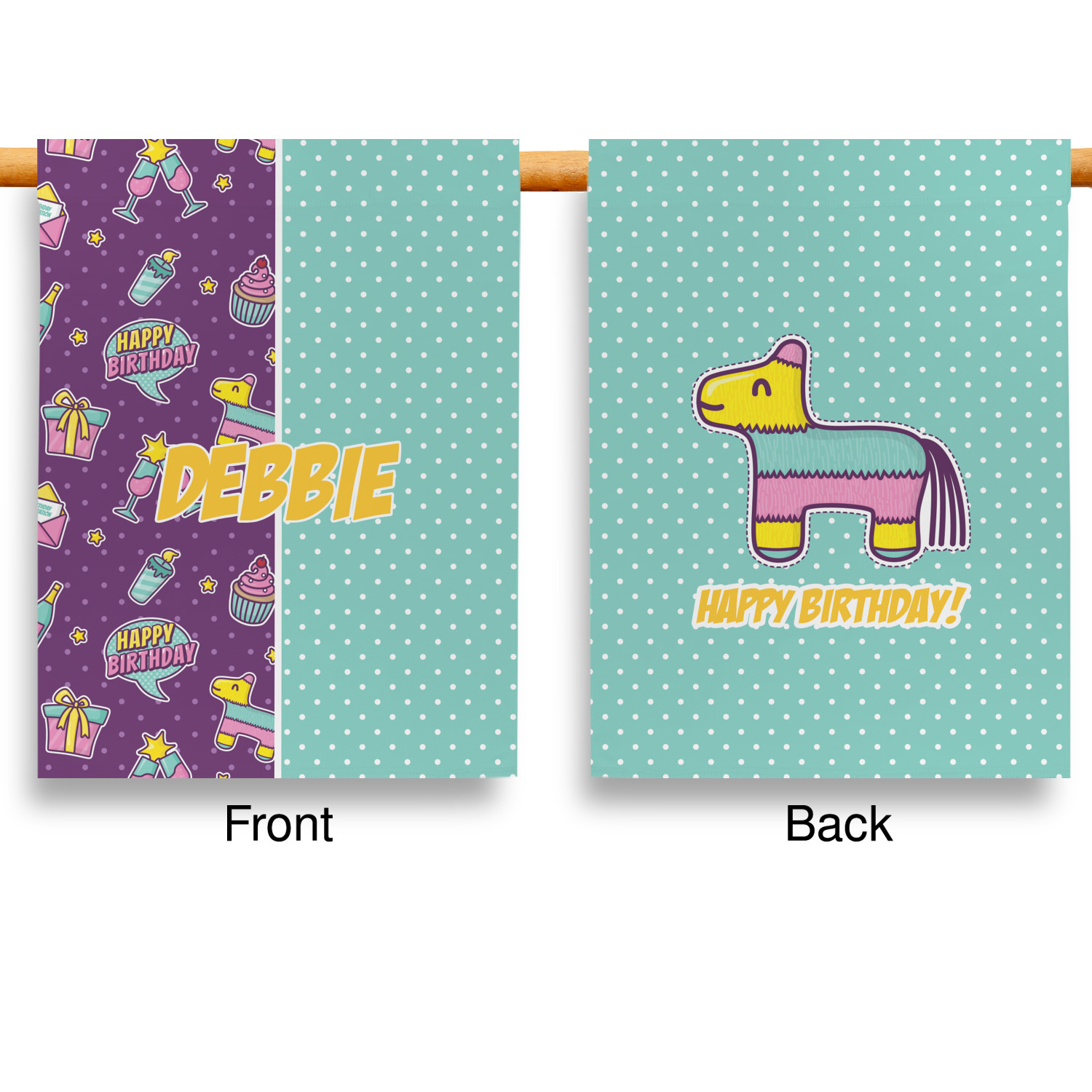Be sure to personalize your design with the birthday boy/girl's name. You can even add their age and the date if you like! Easily change the patterns and some of the colors. Change out the piñata graphics or even the font style!