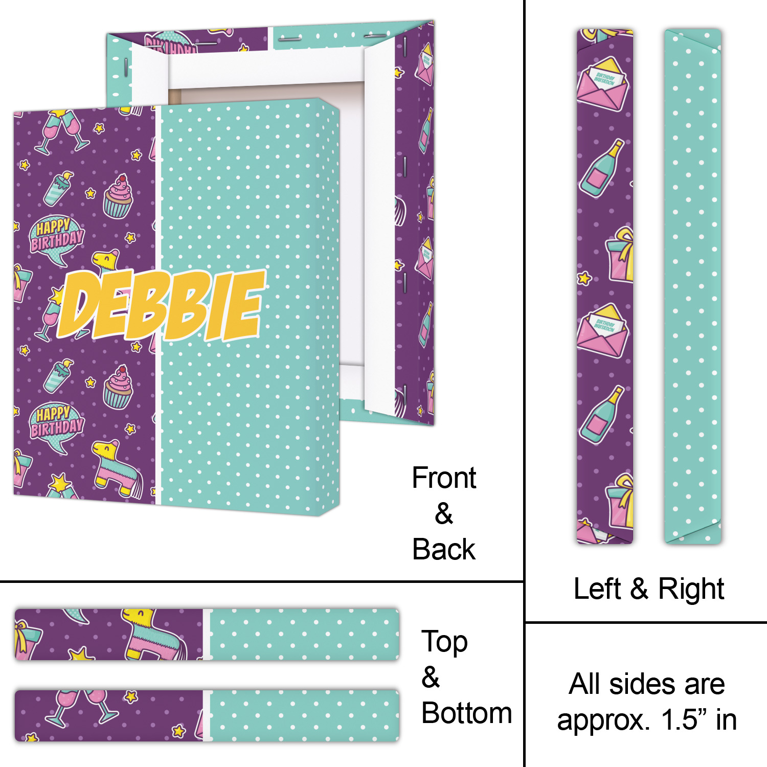 Be sure to personalize your design with the birthday boy/girl's name. You can even add their age and the date if you like! Easily change the patterns and some of the colors. Change out the piñata graphics or even the font style!