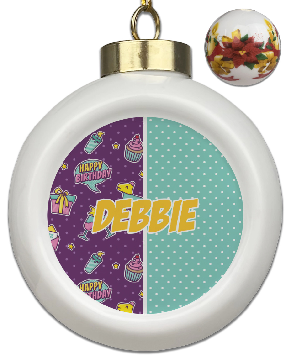 Our Christmas ornaments are a unique ceramic ball shape with a twist as it has a flat face to display your custom design! Select from one of our two design types - Christmas Tree or Poinsettia Garland - to adorn the curved back of your personal design. Each ornament measures 3H x 2.5W x 2D accompanied with a gold string accent for finishing touches to hang on your beautiful Christmas tree!