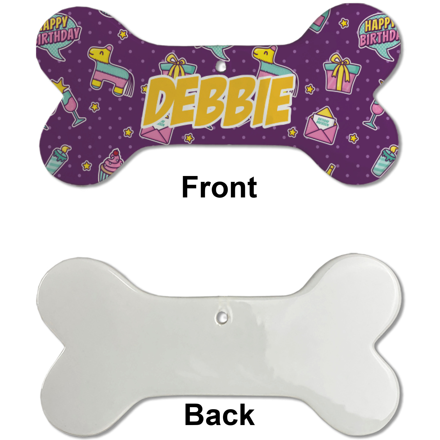 Our dog Christmas ornaments are a ceramic material with a bone-shaped structure hung horizontally. We offer two printing styles to personalize your furry friend's ornament! Choose a one-sided printing, perfect for wall decor, memorial accessory, or doghouse nameplate! Create a double-sided ornament perfect for adorning the Christmas tree. Each dog bone ornament is approximately 4.75" x 2.25" and is printed here in the USA.