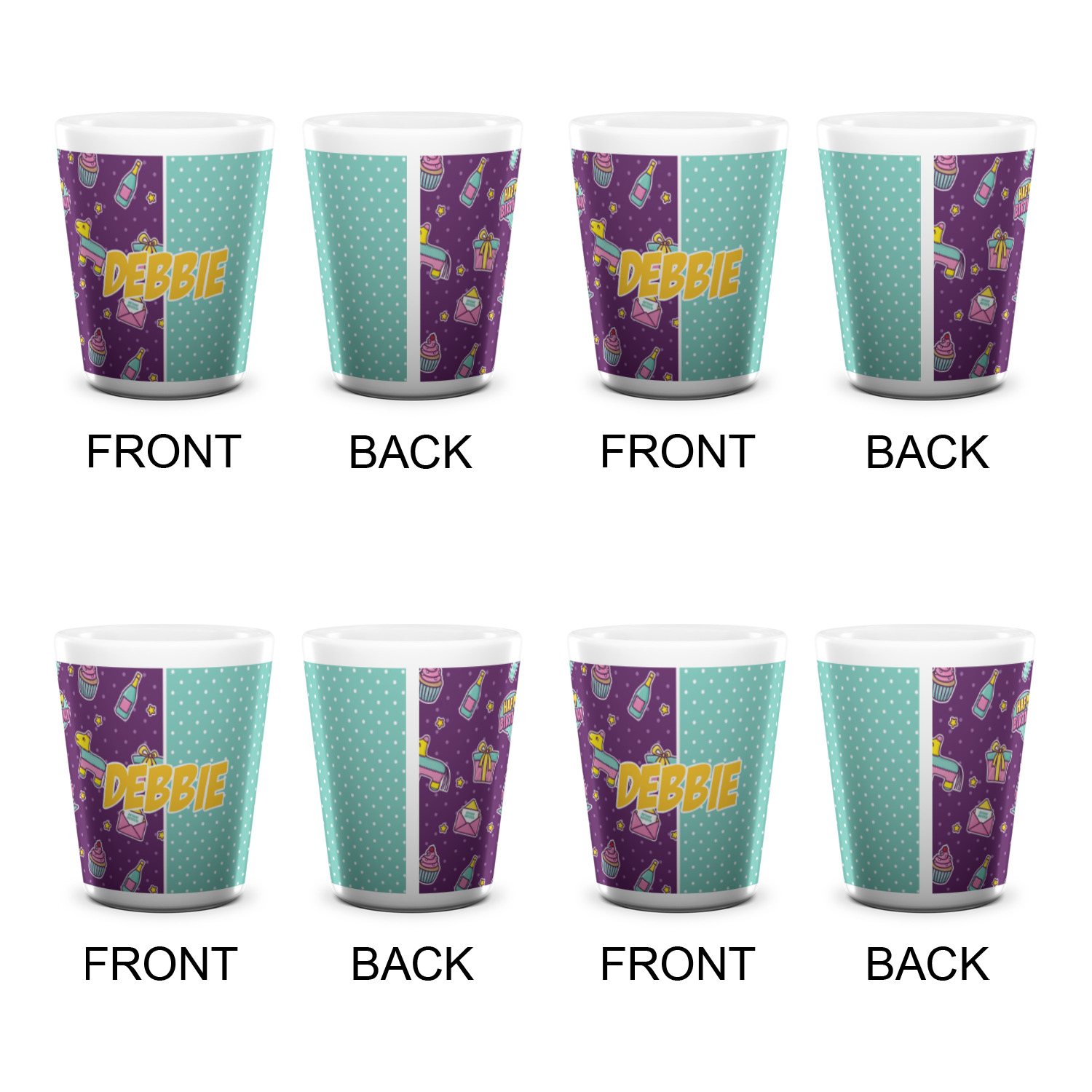 Made from ceramic these shot glasses are printed in full color with the design of your choice. These are a standard 1.5oz size and stand 2.25" tall. Available in a full white ceramic or a two-tone with a black color inside the shot glass. Buy a single or a set of 4, all of which can be designed separately to get you just what you want and need.
