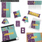 This is a two-pattern design and is split right down the middle. The left design is a bright purple with all kinds of birthday graphics including piñatas, "happy birthday" speech bubbles, presents, cupcakes and more! It also has a subtle purple polka dot pattern in the background. To compliment the polka dots, the secondary pattern is a mint green with white polka dots. Your personalization goes in the bottom right hand side, giving the design an asymmetrical feeling.