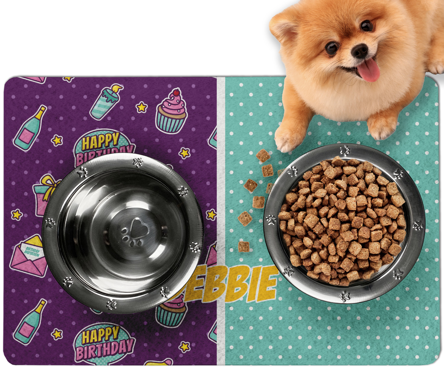 Frustrated with the mess your pets make during mealtime? Personalize a multi-functional dog food mat that prevents spills from reaching your floors, while also incorporating some cute decor to your dog's eating area!