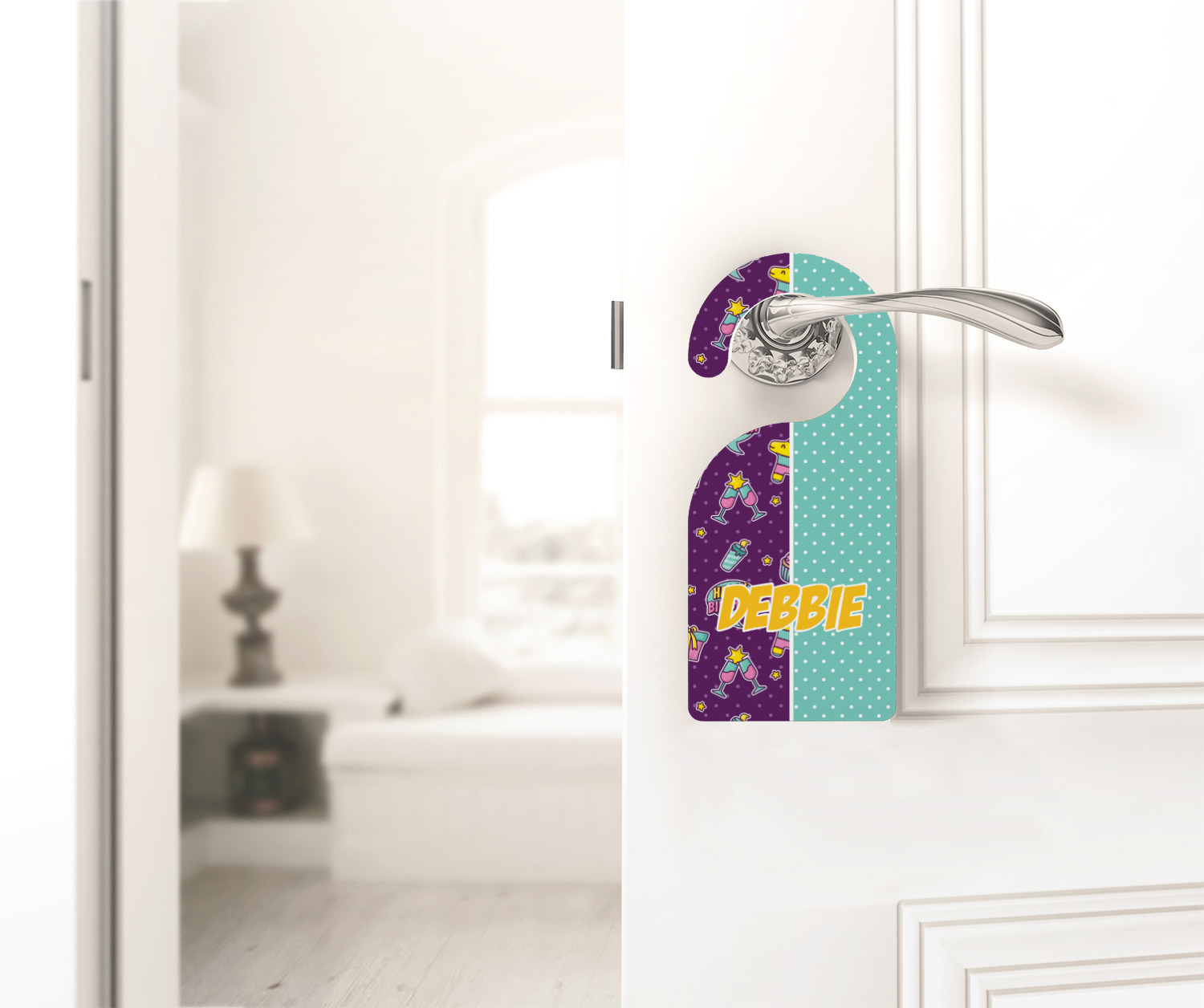 Decorate your door handles with one of our door hangers! These multi-purpose doorknob hangers can be used in a variety of situations; kids can use them to mark their rooms, parents can use them to keep privacy, and they can be used on the doors of nurseries to indicate when the baby is sleeping. Customize a few for some of the rooms in your house today! You could even give these as gifts; give one to the newlyweds in your life, or to a college student so they can use them in their dorm!