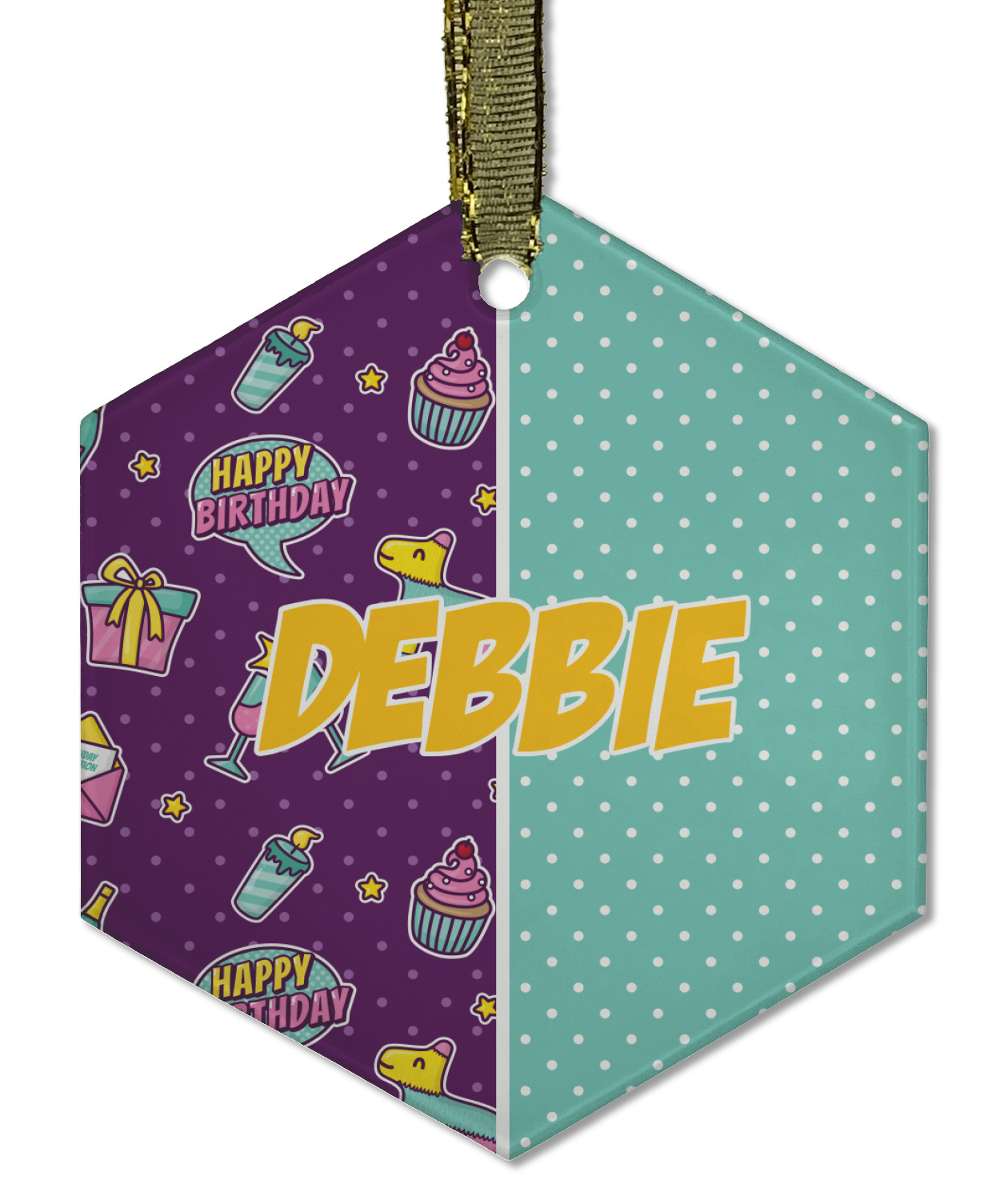 Each of our flat glass ornaments come with a gold string to hang on your Christmas tree with style! We offer two different shapes - flat, round ball or a hexagon. Both glass ornaments have a frosted coating on one side where we print your design while the other side is a clear gloss to give your personalized ornament a sheen finish. Our flat round glass ornament is approximately 3.5" x 3.5" while the flat hexagon ornaments are approximately 3.5" x 3".