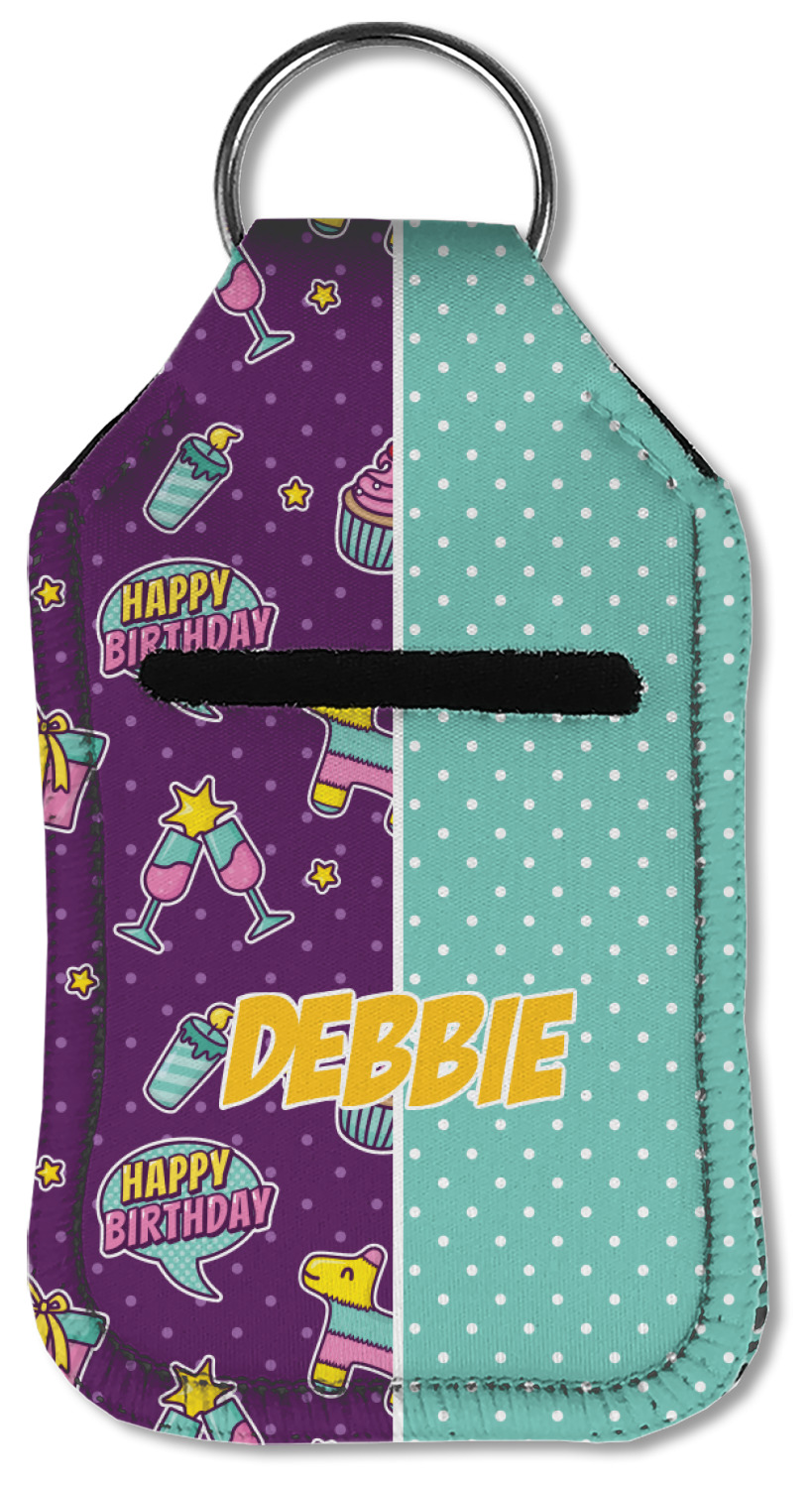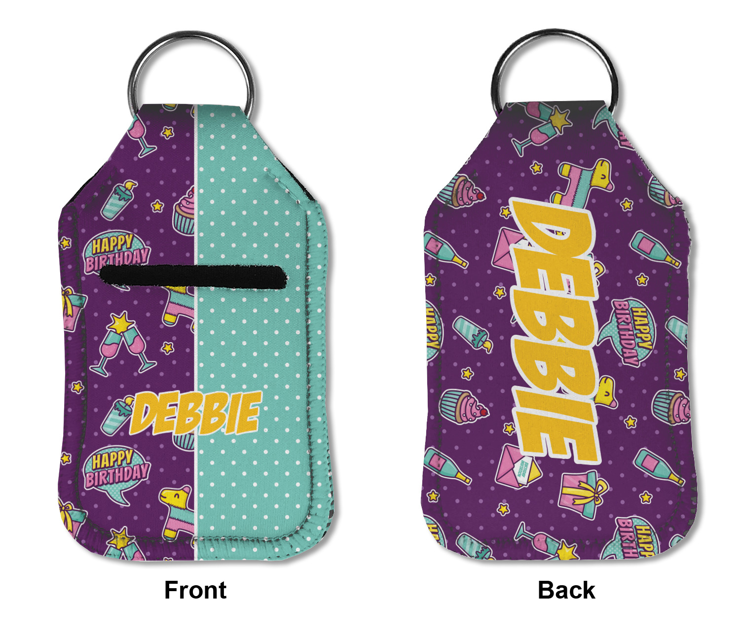 Each hand sanitizer holder comes with its own empty travel-sized, refillable hand sanitizer sure to fit snug in your customized sanitizer case! Our hand sanitizer cases are a durable, yet soft neoprene material sure to last any daily activities or travel agenda. Customize and personalize a hand sanitizer bottle holder with one of our two sizes - small (4.25" x 2.25") or large (5.5" x 2.5"). Each travel sanitizer holder comes with a keyring for attachment on bags, keys, or more!