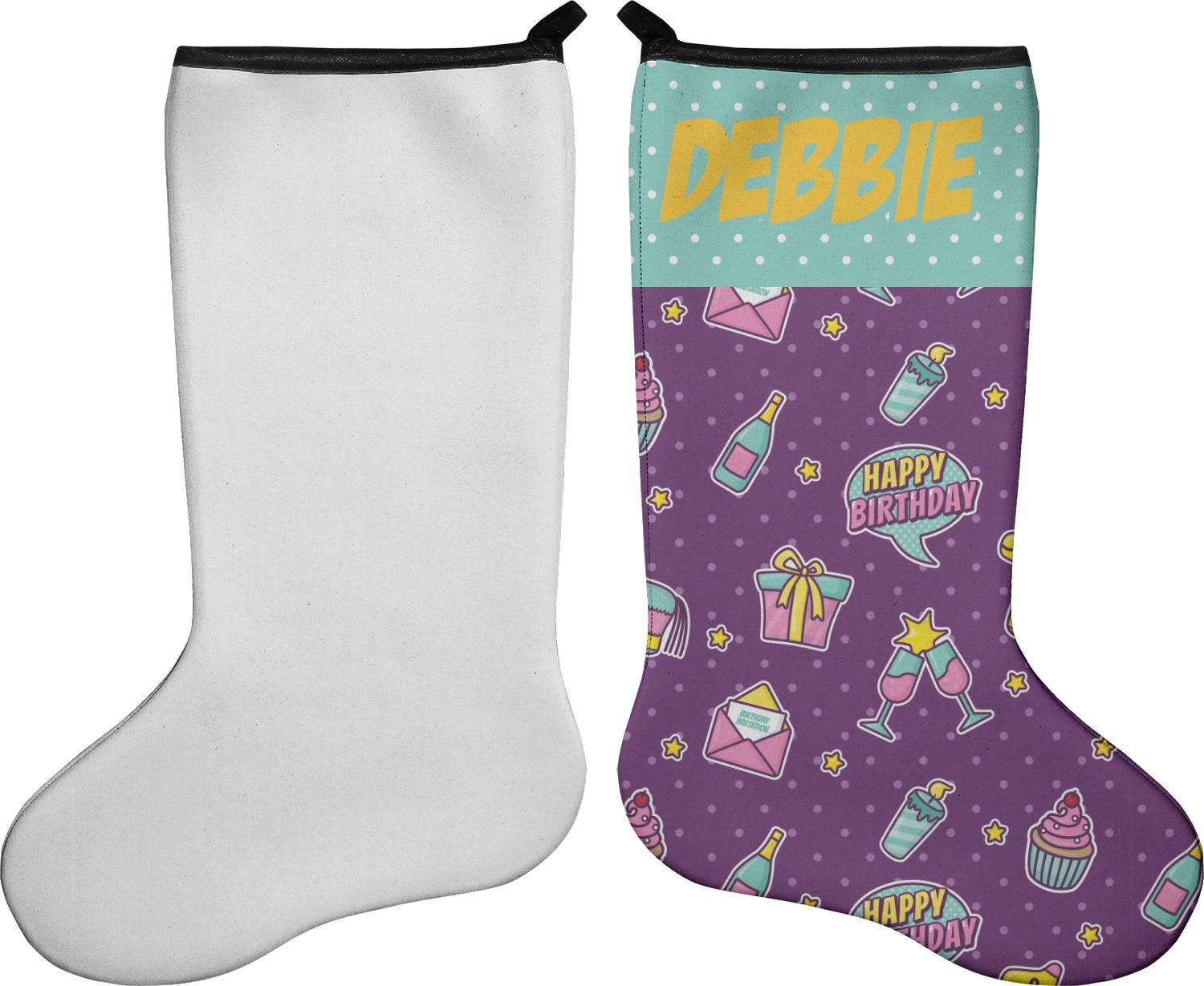 These 17" x 11" stockings are made of neoprene and have a black trim to give them a fantastic finished look. Your very own design is printed right onto the stocking, either single sided with white on the back or double sided where can use the same or different designs / patterns on the front and the back - the choice is yours. At the top of the stocking is a 2" loop for hanging.