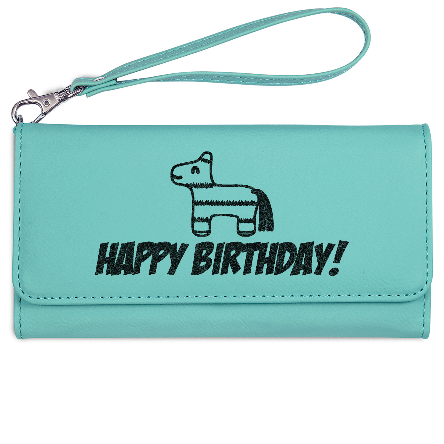 These personalized ladies leather wallets are available in 2 colors - rawhide / cognac and teal.