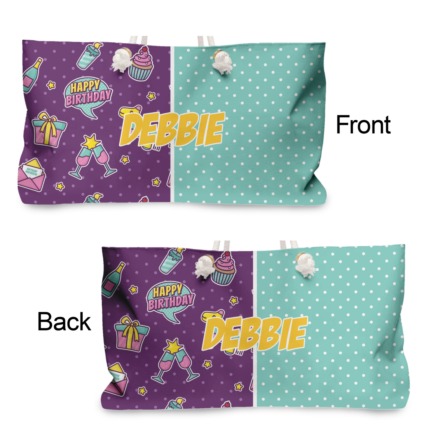 These weekender totes can be customized front and back. The totes are full all over print - so the choice of how background are endless - from beautiful floral or leaf patterns to geometrics or some classic Van Gogh artwork - the possibilities are endless. The totes can also be decorated with photos and logos.