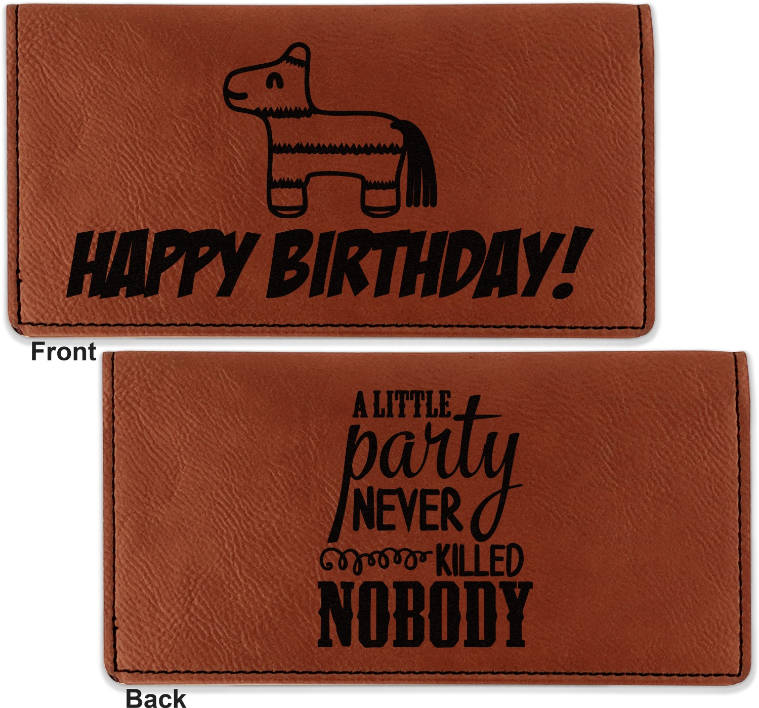 Go into our design center to start personalizing. Your checkbook cover will be laser engraved, making the graphic or text a black color. Choose a fun saying, monogram, or font to go on your checkbook cover. You have the opportunity to do it double or single sided.