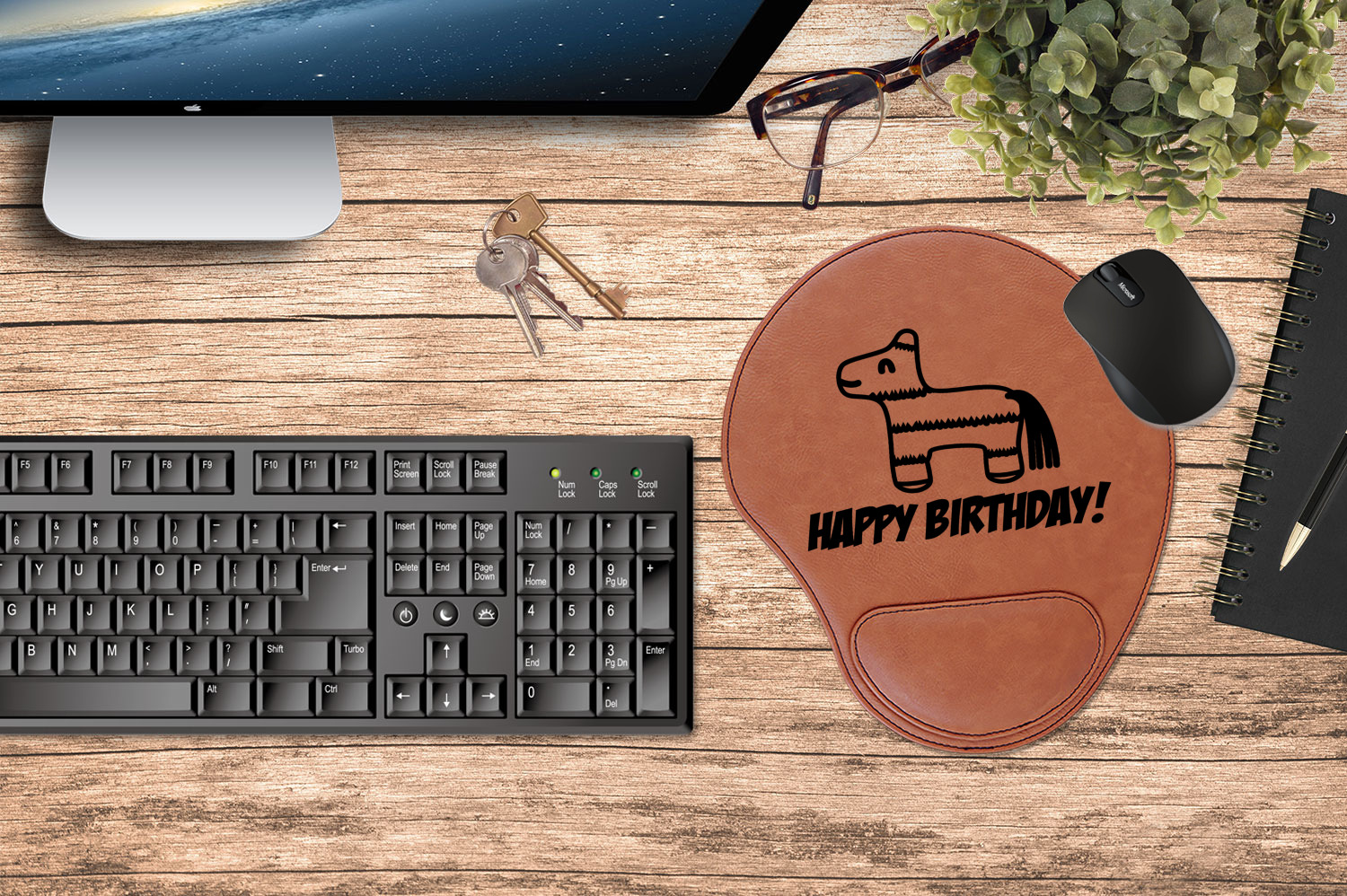 Our leatherette mouse pads add a balanced touch of comfort and class to any desk! Complete with some much needed wrist support, these mouse mats are the perfect gift for the avid computer-user in your life!