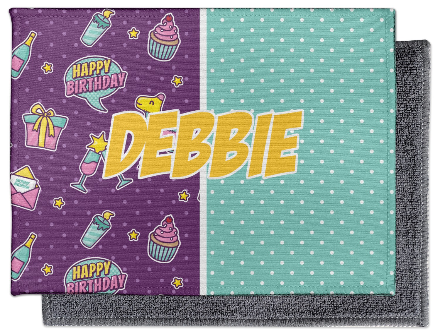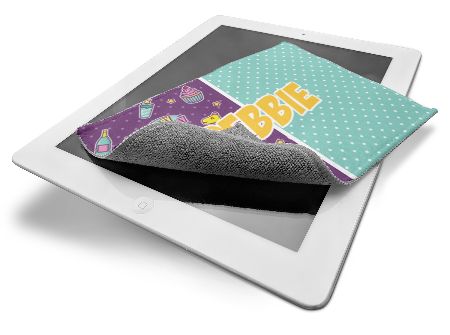 The back of this cleaning cloth is made from a gentle, grey microfiber material, that is masterful at removing smudges, grease, and fingerprints from lenses or electronic screens. The front side of the screen cleaner displays your personalized design in vibrant color. A beautiful stitch lines the edges and secures the microfiber to the polyester top. We provide you with the option of customizing this screen horizontally or vertically, depending on your preferences.