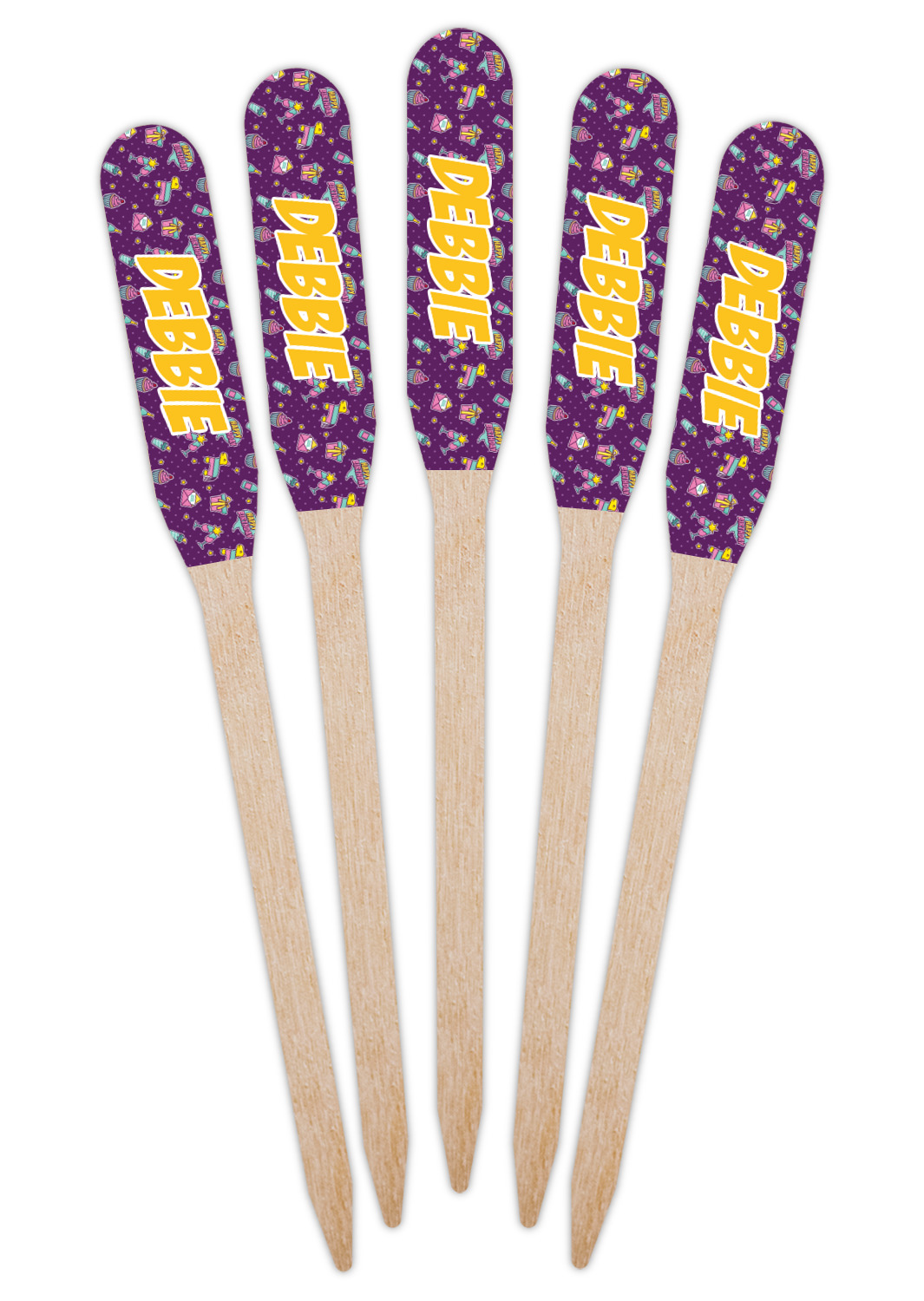 Our paddle style food & drink picks are available in 2 print styles - single sided and double sided.