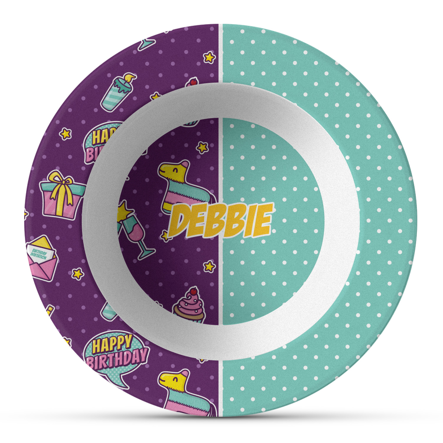 Made from a composite, thermo-set, polymer plastic, these dinner bowls have the versatility, durability, and weight of a melamine bowl without any of the downsides of melamine. Unlike melamine dinnerware, these bowls can withstand high heat. These custom plastic bowls can even handle temperatures of up to 250 degrees Fahrenheit, for up to 60 minutes. The pieces of our plastic dinner set are never made with harmful chemicals, such as BPAs, formaldehyde, DEHPs. We display your personalization on the base of this bowl's interior, while the bowl itself has an 8.75" diameter and is 1.75" tall.