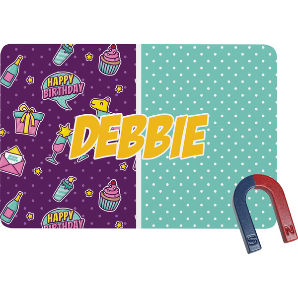 Our custom fridge magnets are crafted from aluminum, and feature a magnetic backing that allows it to adhere to magnetic surfaces, such as your fridge, a locker, dry erase boards, and more! The entire face of the magnet displays your design, and the glossy finish makes the surface of your magnet shine. This custom magnet measures at 2 by 3 inches.